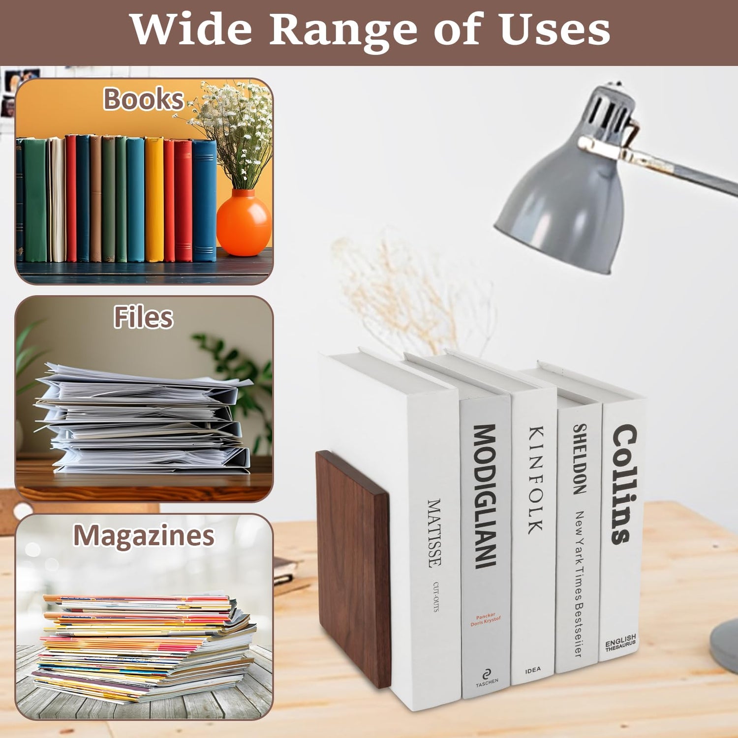 - Wide Application: The simple design of the walnut bookend is perfect for organizing books, movies, DVDS and documents, and is the perfect gift for family, friends and anyone who loves books during birthdays, Christmas and other holidays