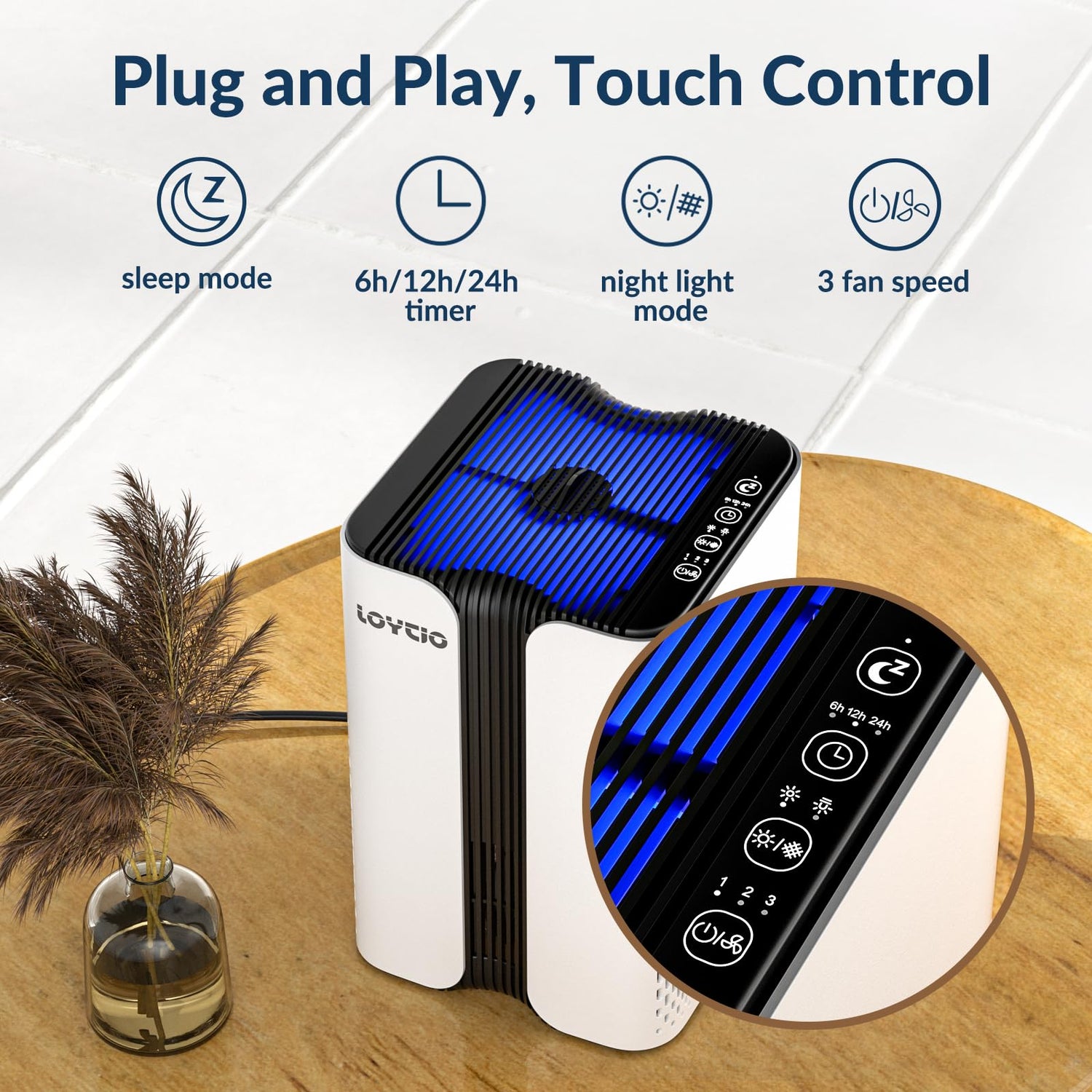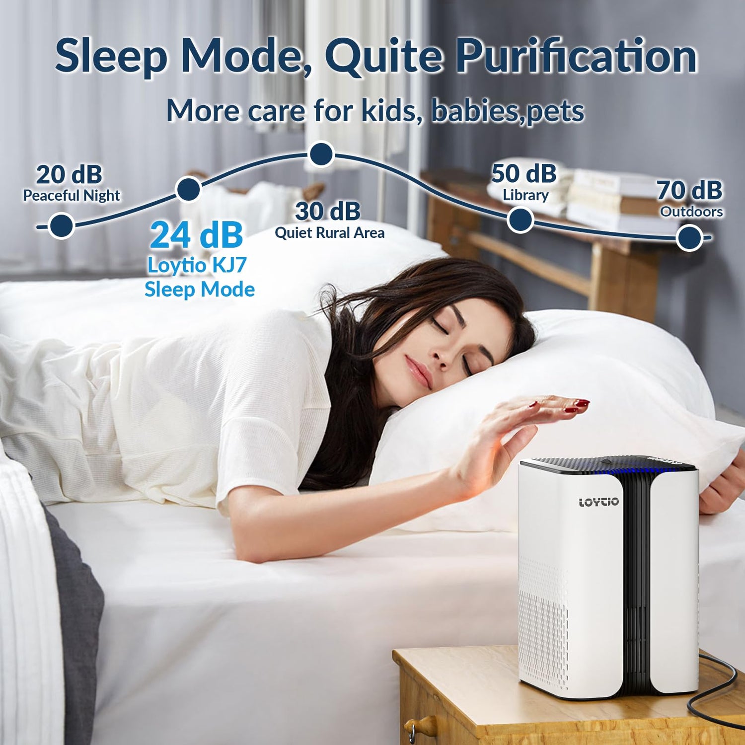 LOYTIO Air Purifiers for Home, HEPA Air Purifier Covers Up to 400 sq.ft Room, 24db Sleep Model, Night Light,3 Timers, with Aromatherapy for Bedroom, Dorm Room, Apartment, Kitchen-KJ7