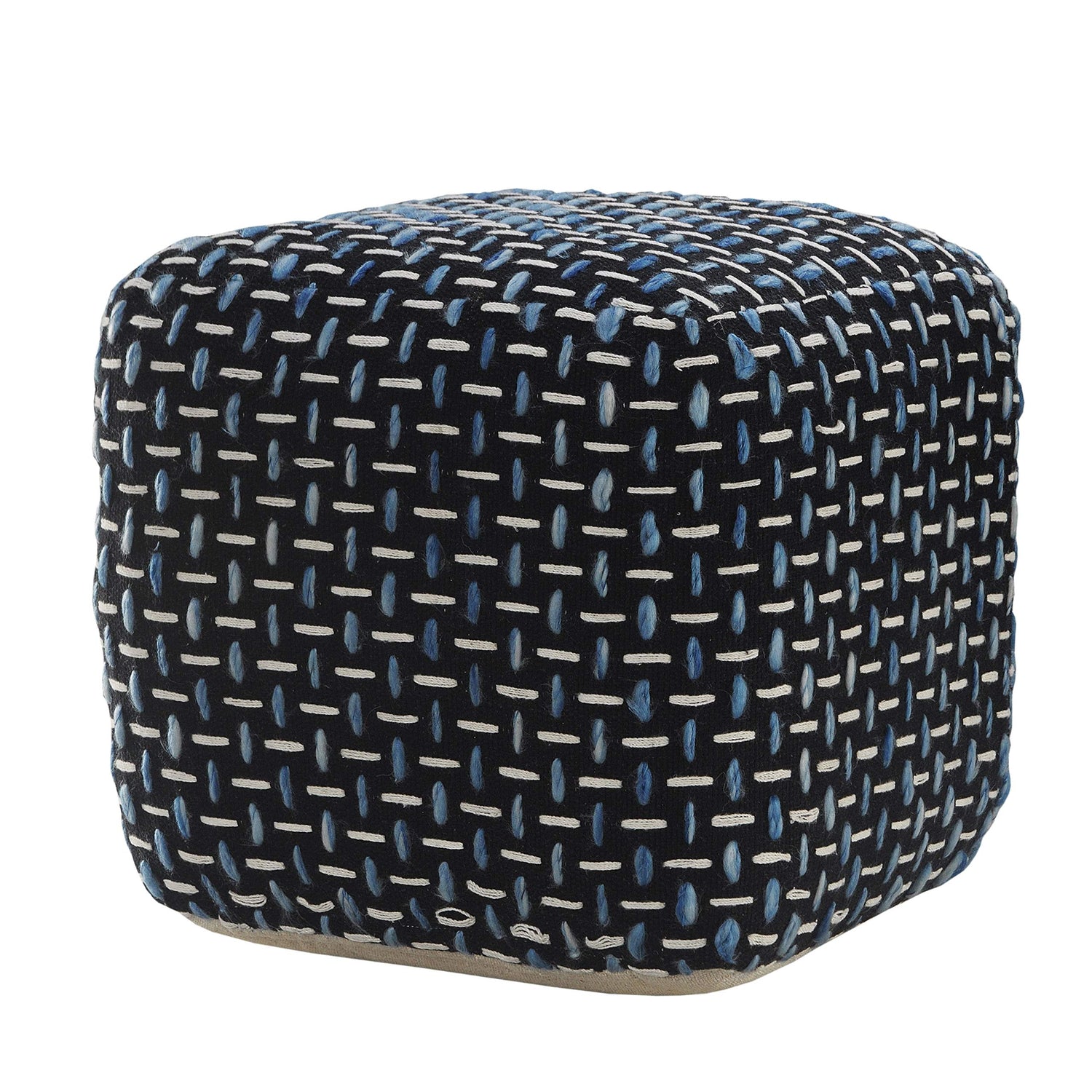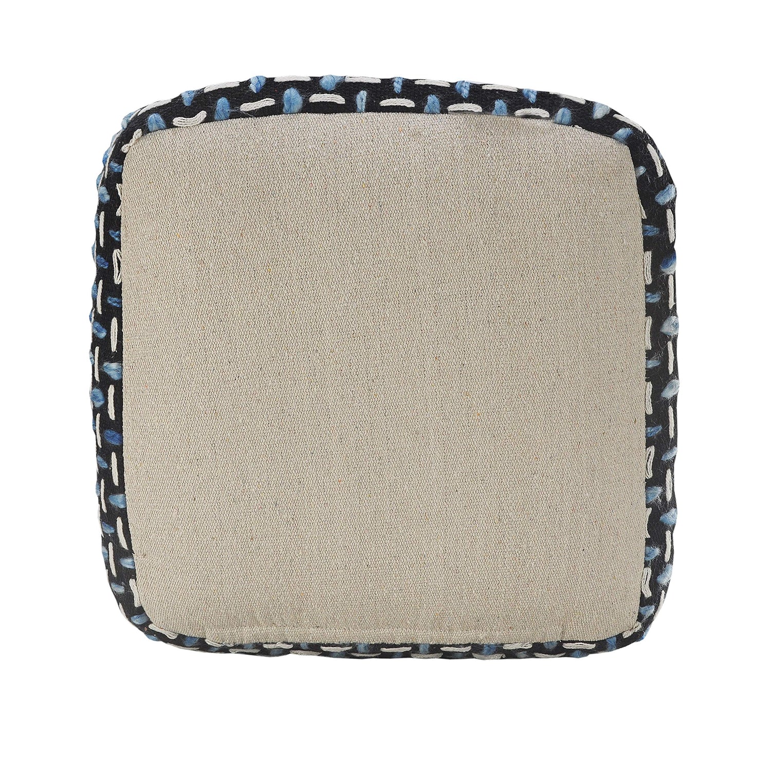 LR Home Evette Rios Black/Blue/White Transitional Polyester Square Ottoman Pouf for Home Decor | Hand-Made Modern Pouf Foot Rest for Bedroom & Living Room Decor | 16 x 16 x 16 Stuffed Pouf for Seating