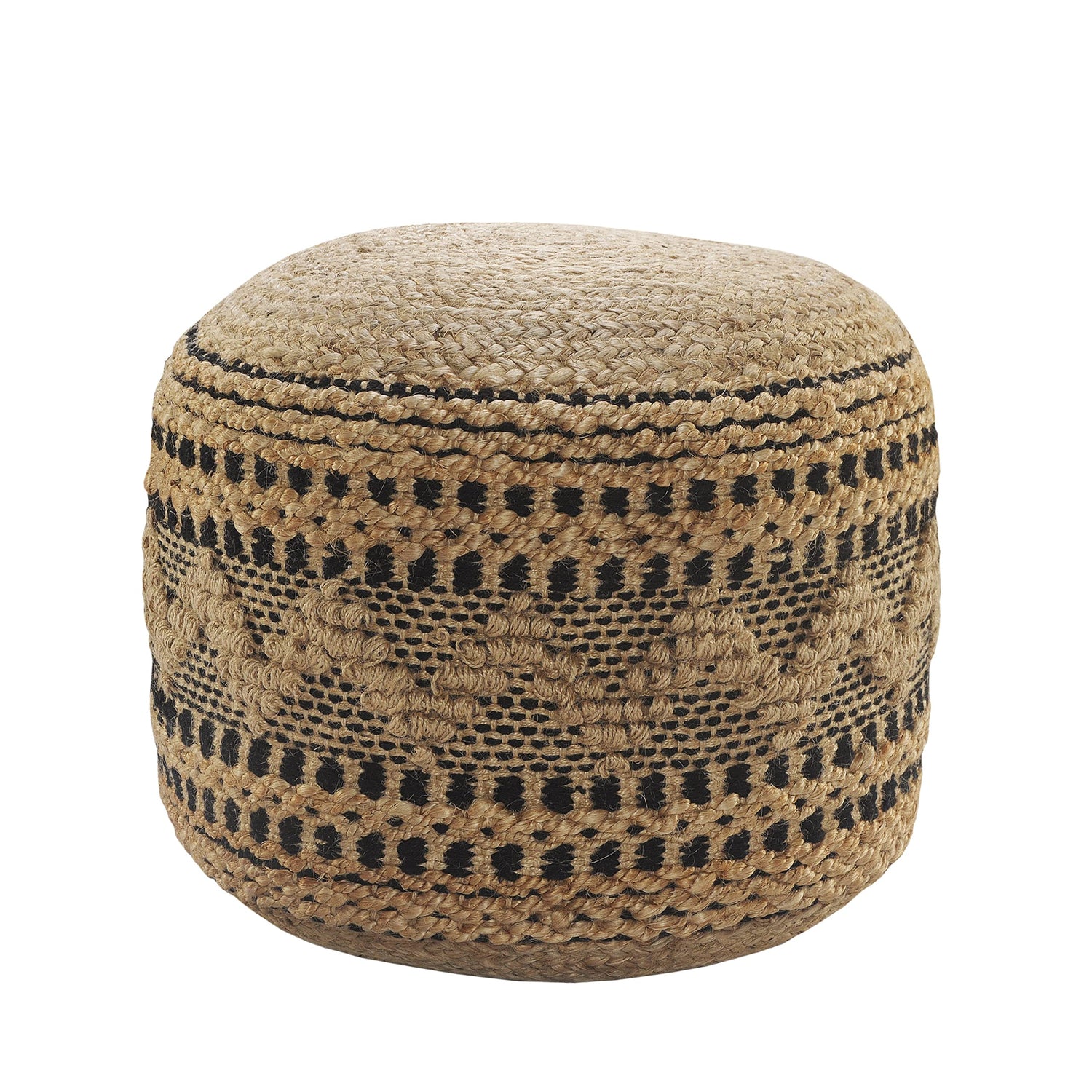 LR Home Tan/Black Round Ottoman Pouf for Home Decor | Striped Hand-Woven Jute Cotton Blend Round Pouf Ottoman Footrest for Bedroom & Living Room Decor | 18" X 18"W X 14"H