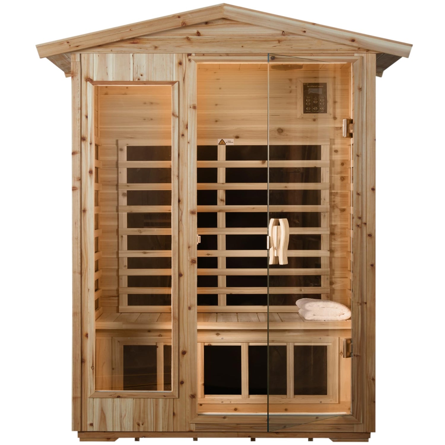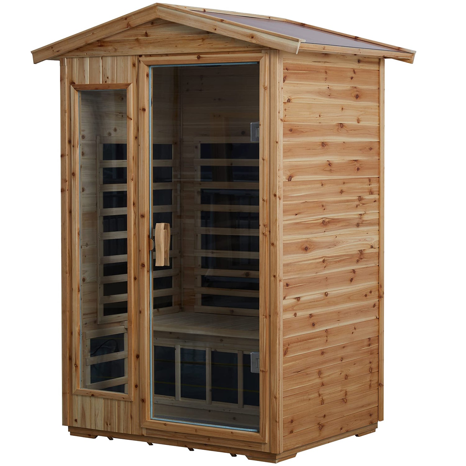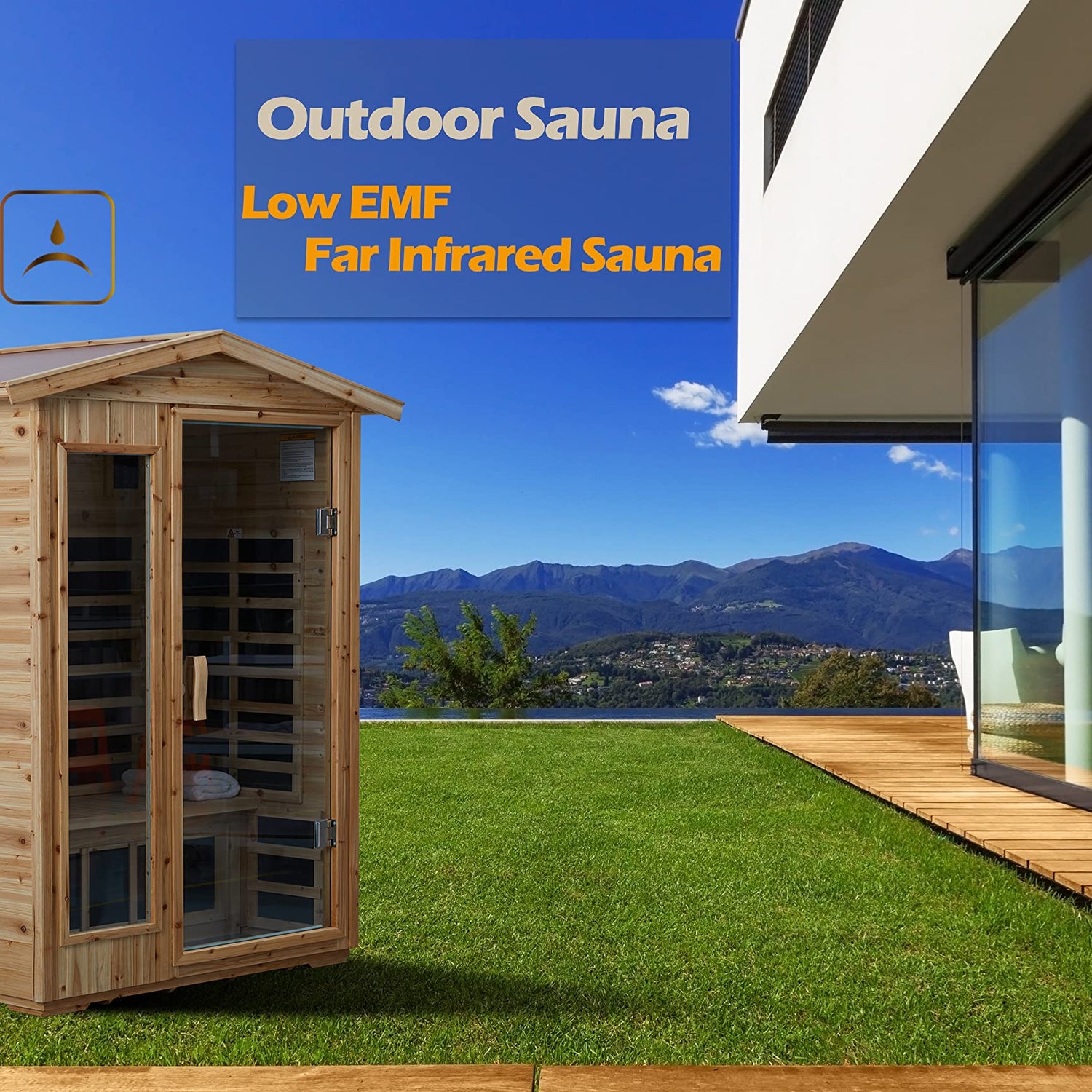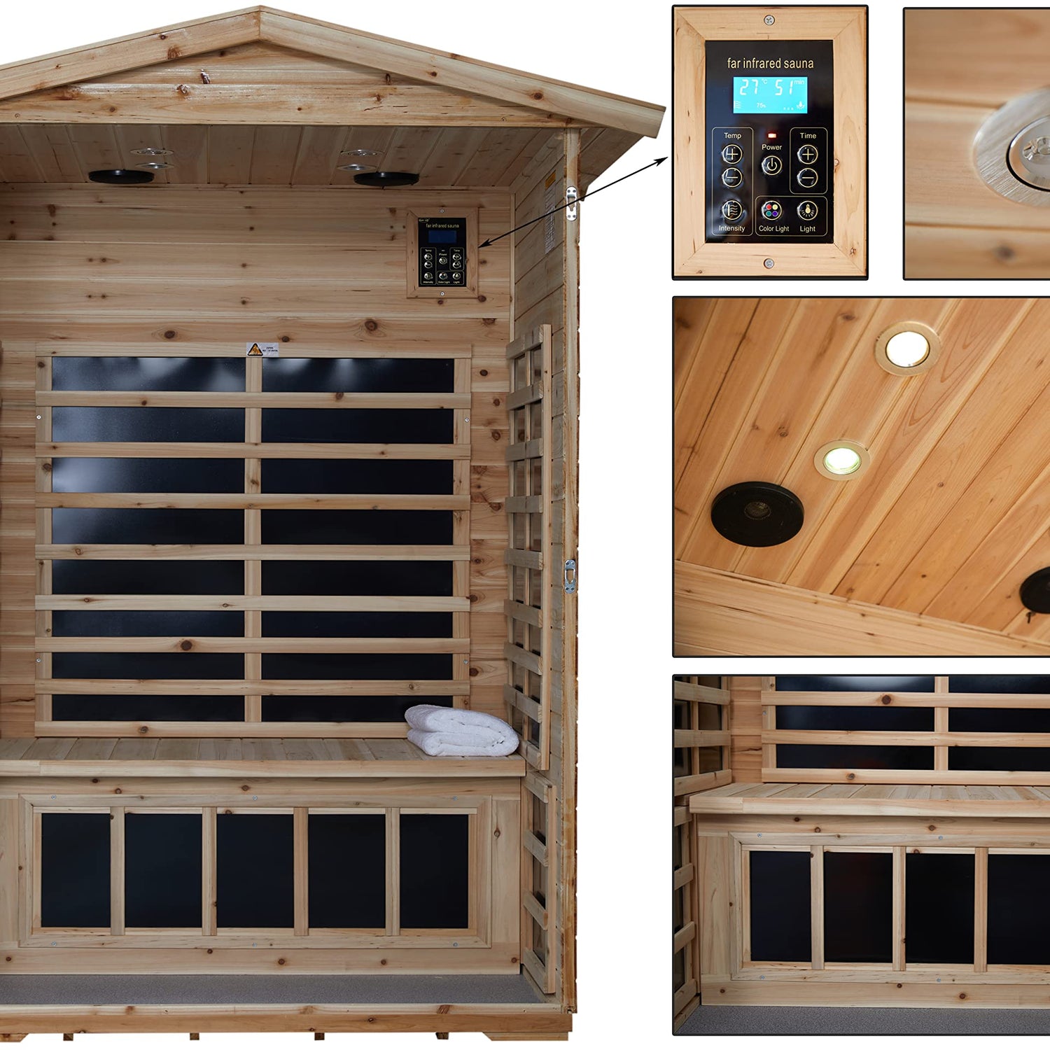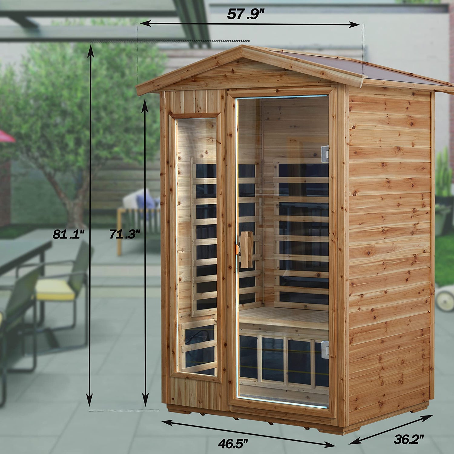 LTCCDSS Outdoor Infrared Sauna 2 Person | Far Infrared Sauna, Canadian Hemlock, Withstand Outdoor Temp -5℉-104℉| Low EMF Sauna Room for Home-9 Low EMF Heaters-Chromotherapys-Bluetooth Speakers