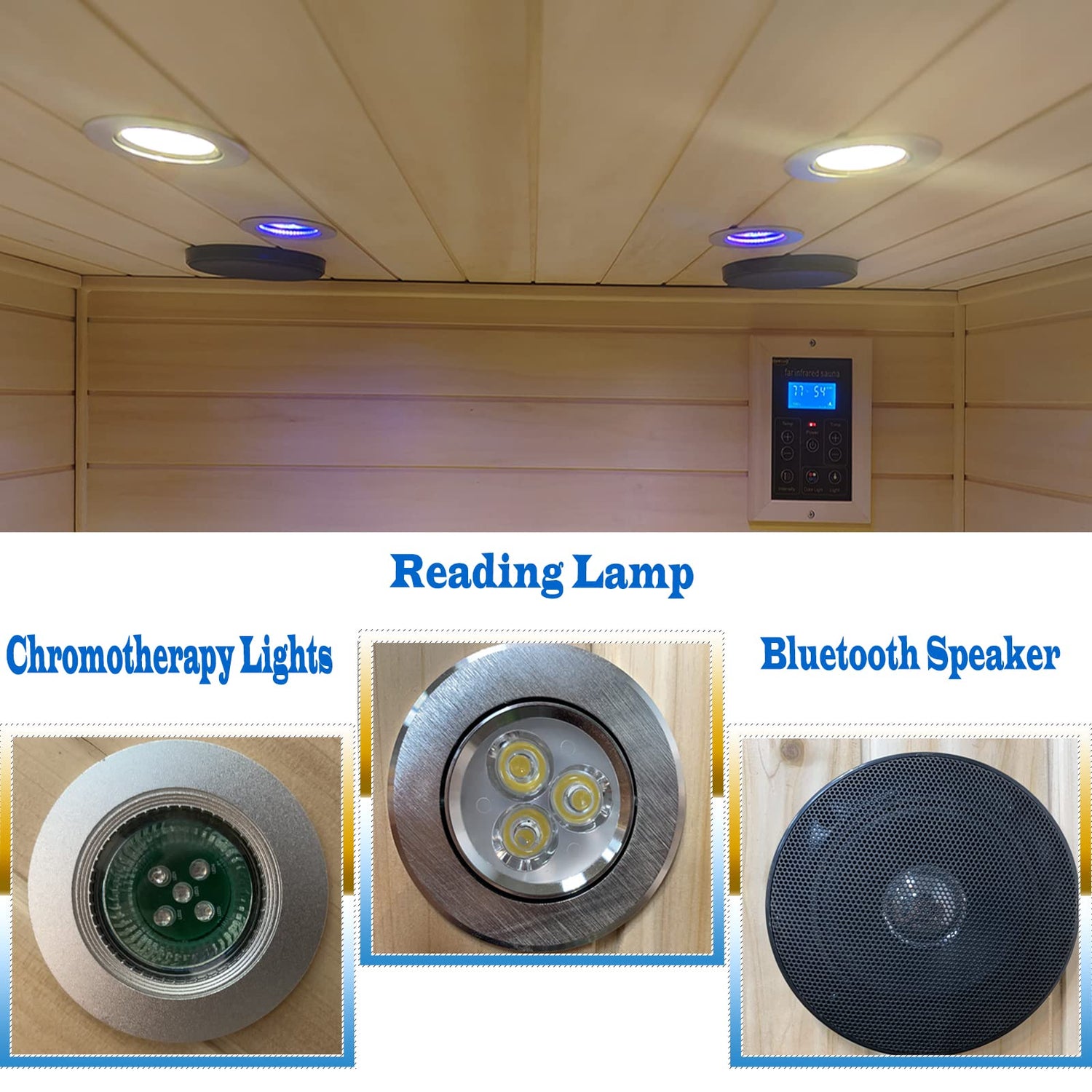 - 📐【Perfect Sauna Experience】: Outdoor sauna - 2 colorful lights, 2 reading lights and 2 bluetooth speakers. After a long day at work, relax in the home sauna while reading, listening to music and more. It can lose weight, improve skin tone, relieve stiffness and joint pain, increase blood circulation, promote calmer sleep, reduce stress and improve overall energy levels.