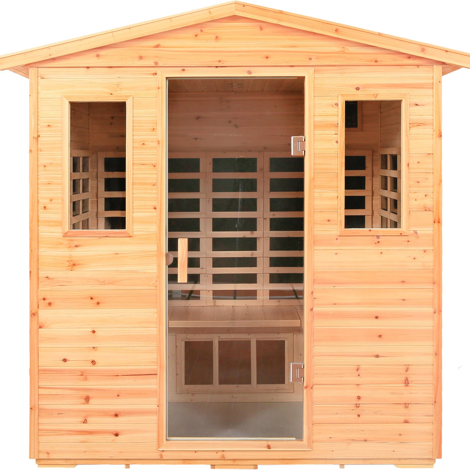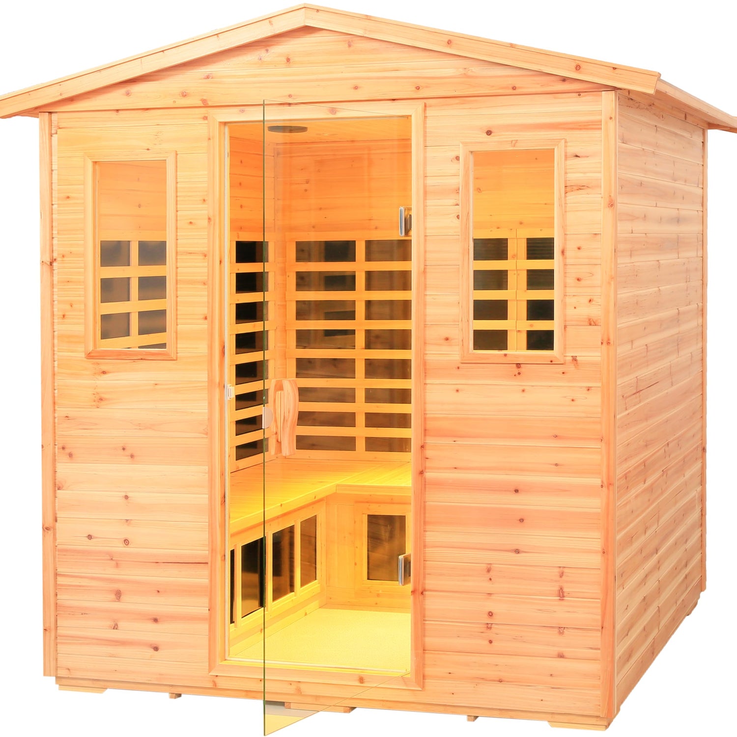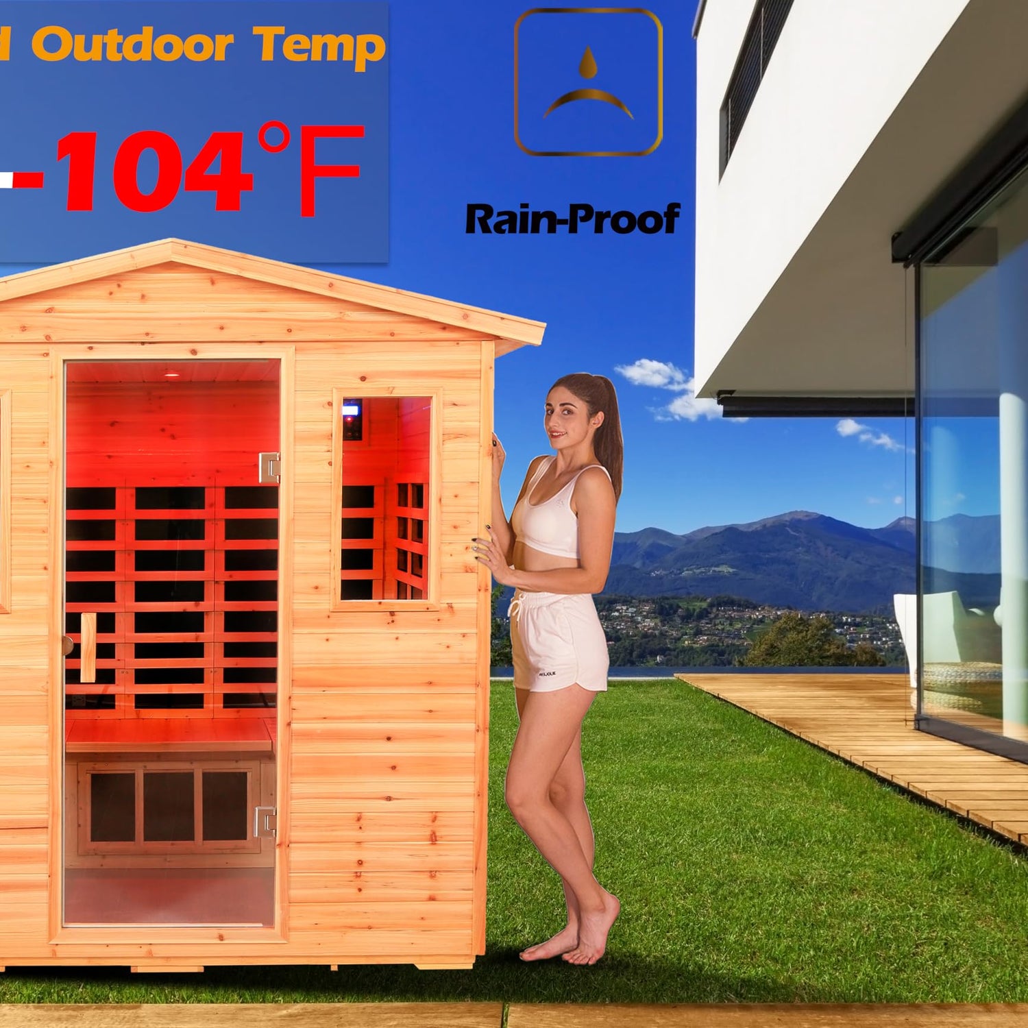 - 📐【Low EMF Far-Infrared Outdoor Sauna】:Outdoor sauna - 12non-radiation carbon crystal far-infrared heating plates, 2800 W, stable wave band, 100% maintained in the low EMF range for human health. Ten minutes quick warm-up, temperature control range: 68-149 degrees Fahrenheit (20-65 degrees Celsius), outdoor sauna with 6mm tempered glass door, firmly locks the temperature inside the sauna.