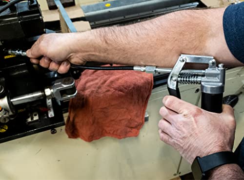 - Comfortable Grip: The grease gun features a coated handle and textured barrel with a no slip grip that allows for easy operation and unmatched ease during prolonged use.