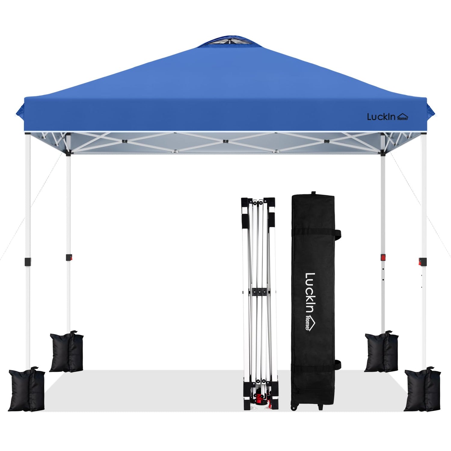 LuckIn 10×10 Pop Up Canopy Tent, Patented One Push Instant Canopy with Wheeled Carry Bag, Heavy Duty Shade Tent for Outdoor, Includes 150D Silver Coated Cover, 8 Stakes, 4 Ropes, 4 Weight Bags, Blue