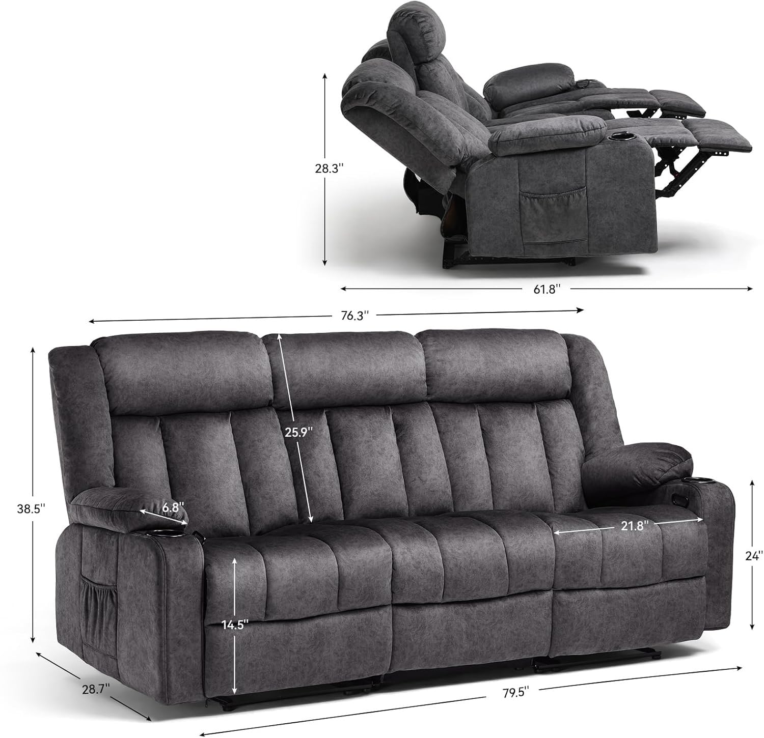 - Durable Wood & Metal Frame – Built with a combination of solid wood and reinforced metal, this reclining set offers reliable stability and long-lasting use, supporting up to 300 lbs per seat.