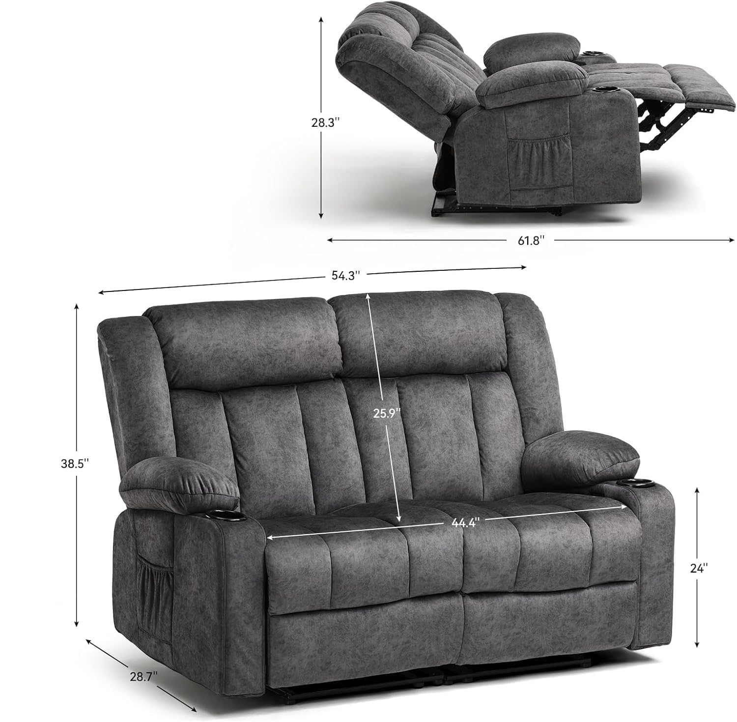 - Durable Wood & Metal Frame – Built with a combination of solid wood and reinforced metal, this reclining set offers reliable stability and long-lasting use, supporting up to 300 lbs per seat.