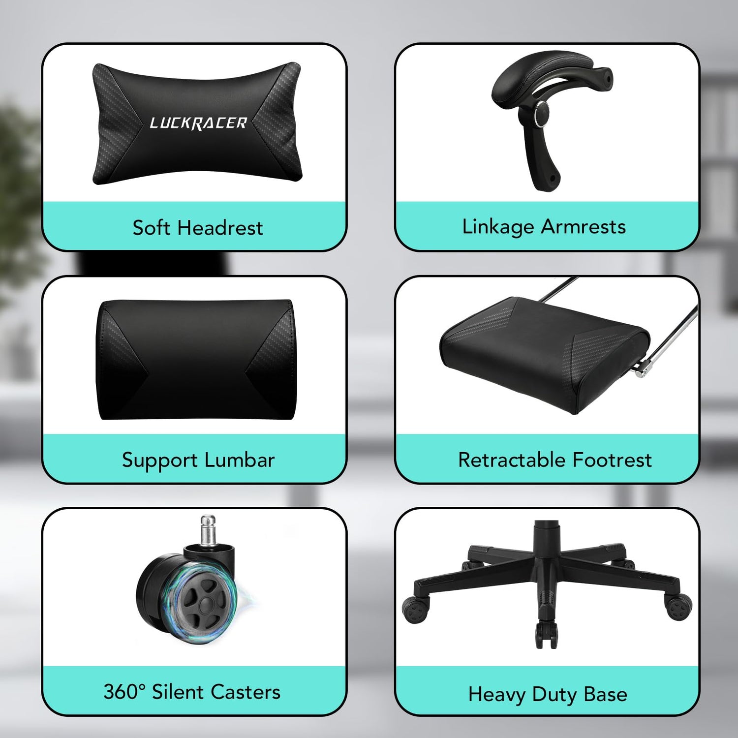 LUCKRACER Gaming Chair, Video Game Chairs Gaming Computer Chair with Footrest 350Lb Heavy Duty Gaming Chair Ergonomic Office Chair Lumbar Support for Adults, High Back, Swivel Seat, Recliner(Black)