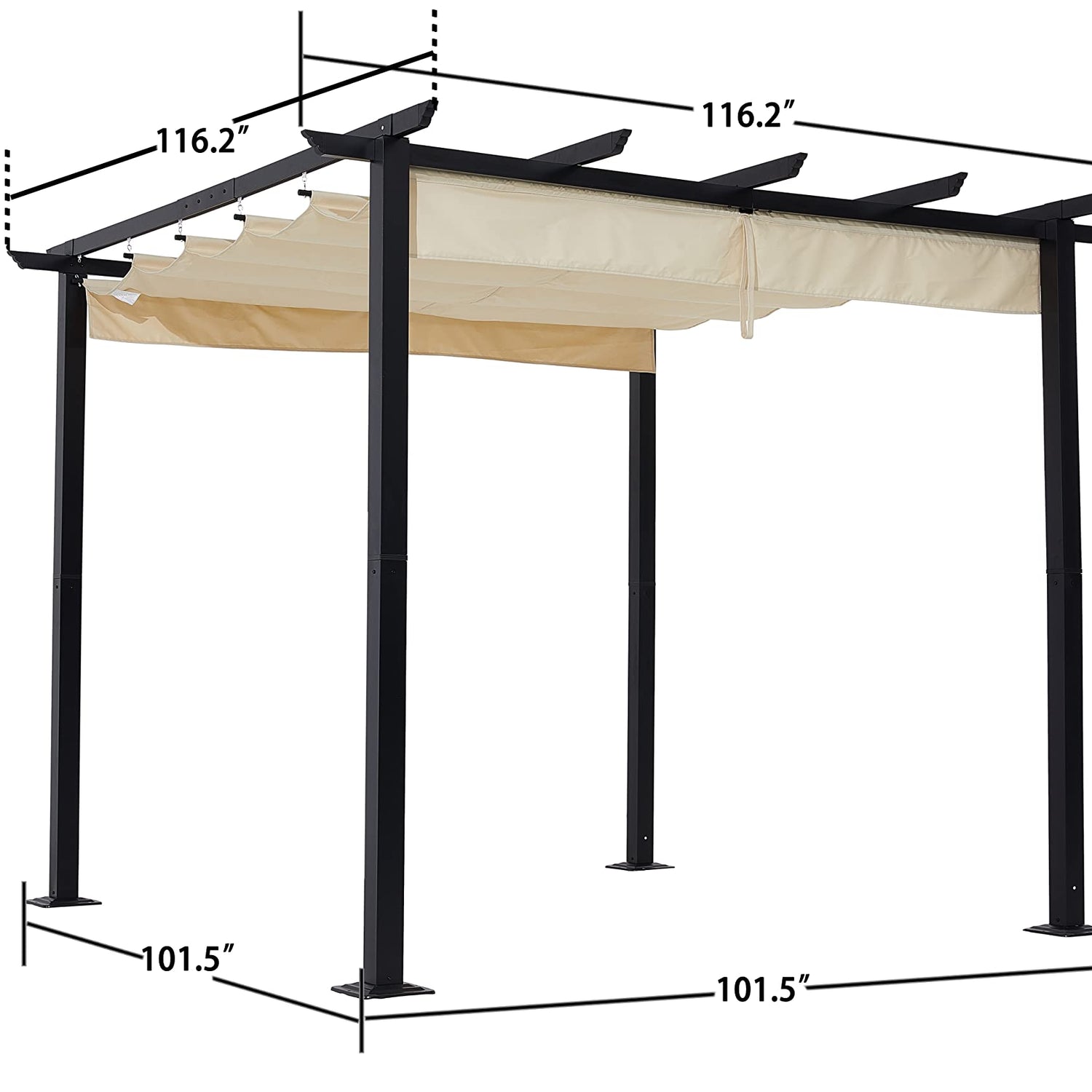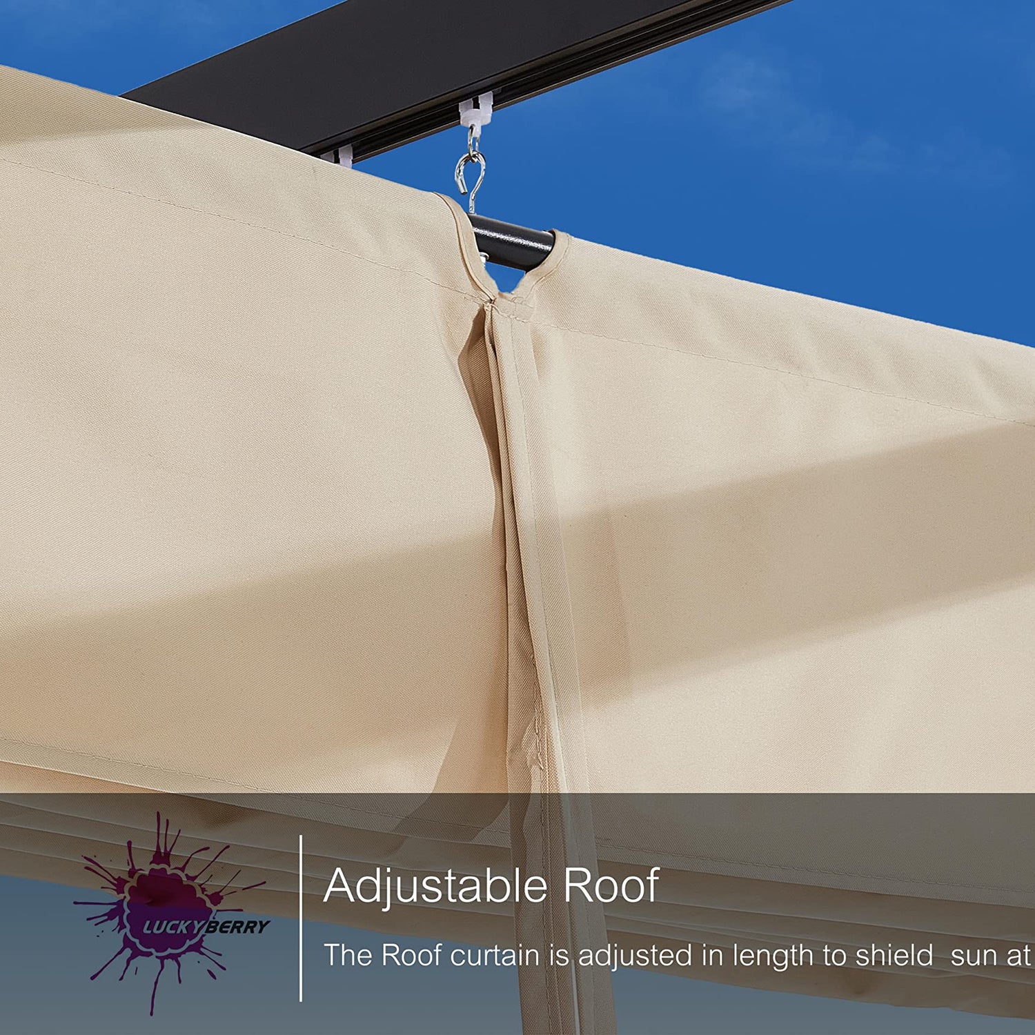 Luckyberry 10' X 10' Outdoor Retractable Pergola with Sun Shade Canopy Patio Metal Shelter for Garden Porch Beach Pavilion Grill Gazebo Modern Yard Grape Trellis Pergola, Beige