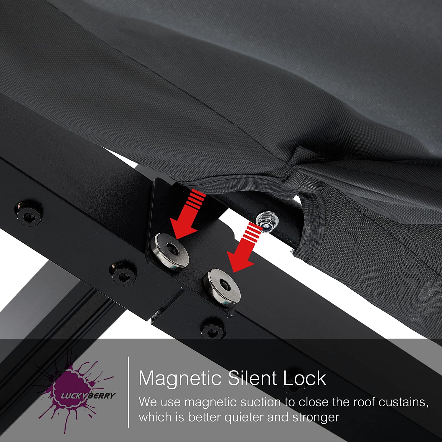 - Retractable Canopy:The pergola is equipped with a magnetic lock which is easy to open and close.