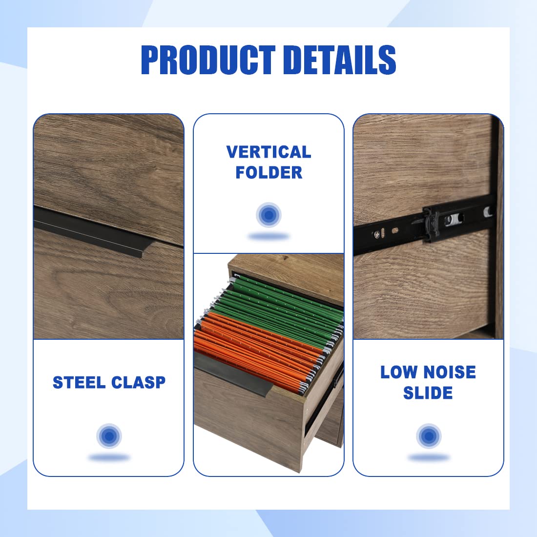 - Full-Extension Drawers:This cabinet have 2 deep drawer that are perfect for hanging your file documents.The 2 spacious drawes allow you to store letter-sized documents and can support up to 55lbs.you can place printers and projectors on the surface as you like.