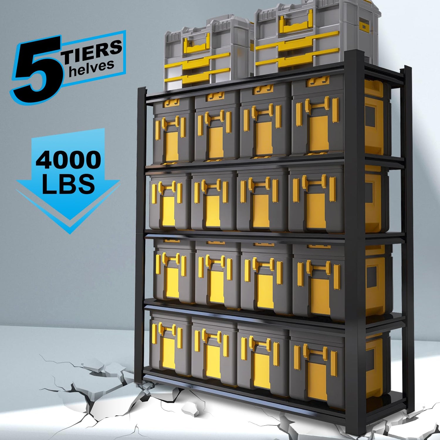LUCYPAL Garage Shelving Heavy Duty,5-Tier Garage Shelves Storage Loads 4000LBS,Adjustable Metal Shelf Industrial Storage Rack for Basement Kitchen 84" H x 47" W x 24" D