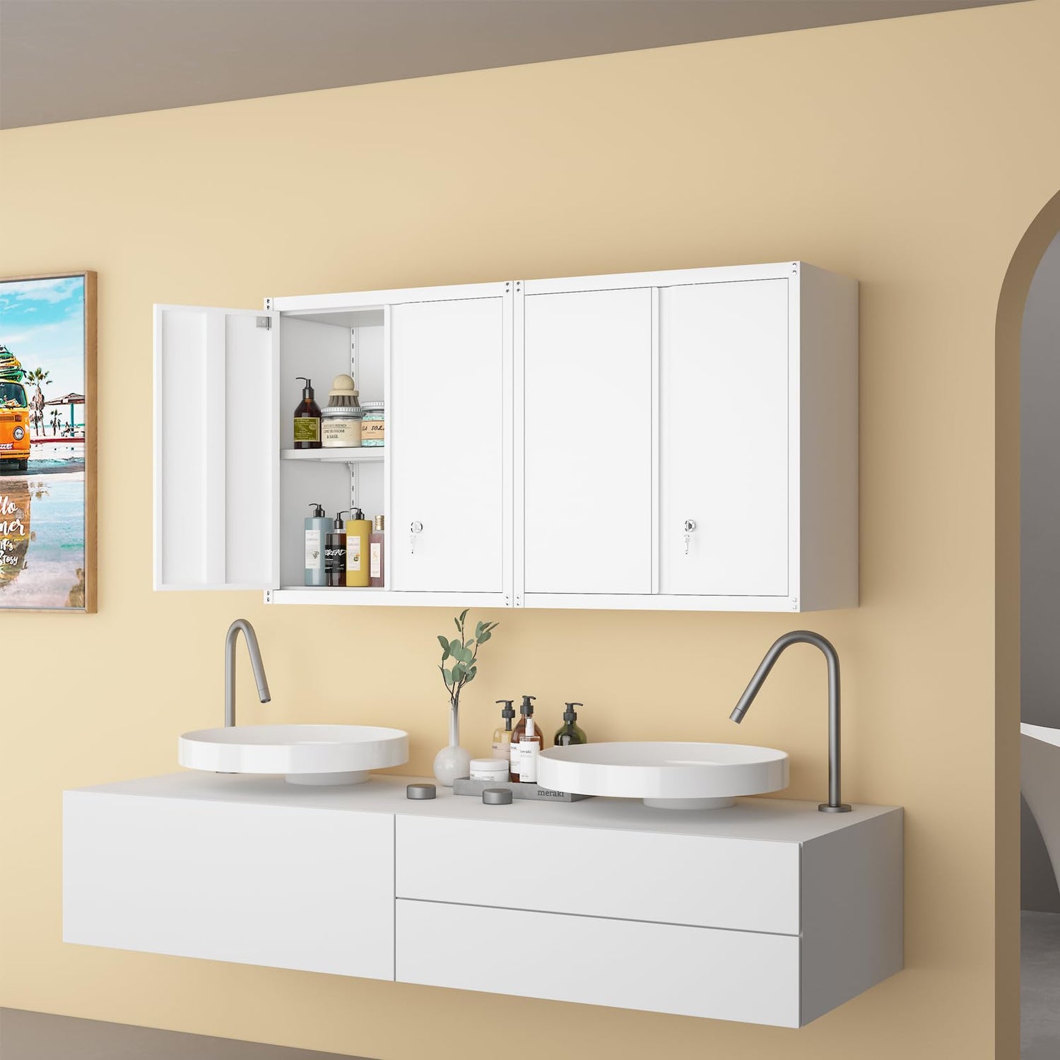 LUCYPAL Metal Wall Storage Cabinet with Shelves,Garage Wall Mounted Steel Storage Cabinet with Locking Doors for Garage,Home,Office,Kitchen,White