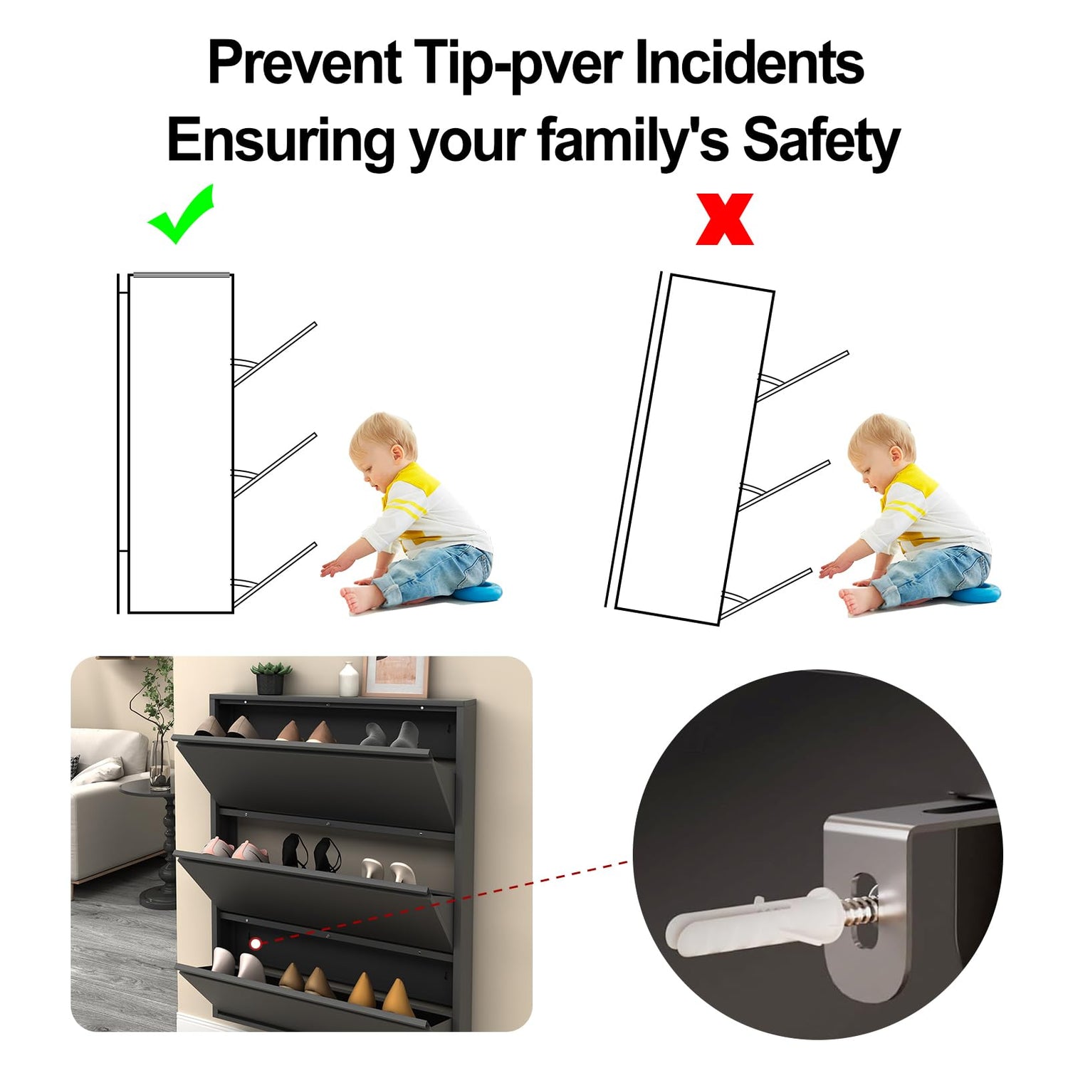 - 【Space-Saving Design】The shoe storage cabinet for entryway slim features a wall-mounted design that frees up valuable floor space, making it perfect for small apartments or homes with limited room. Its compact yet functional structure ensures your entryway stays clutter-free, while the secure mounting prevents tipping, keeping children and pets safe.