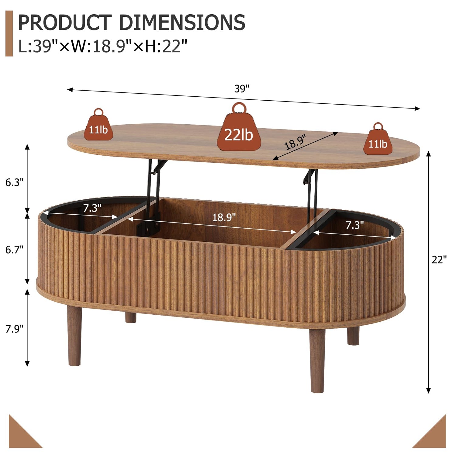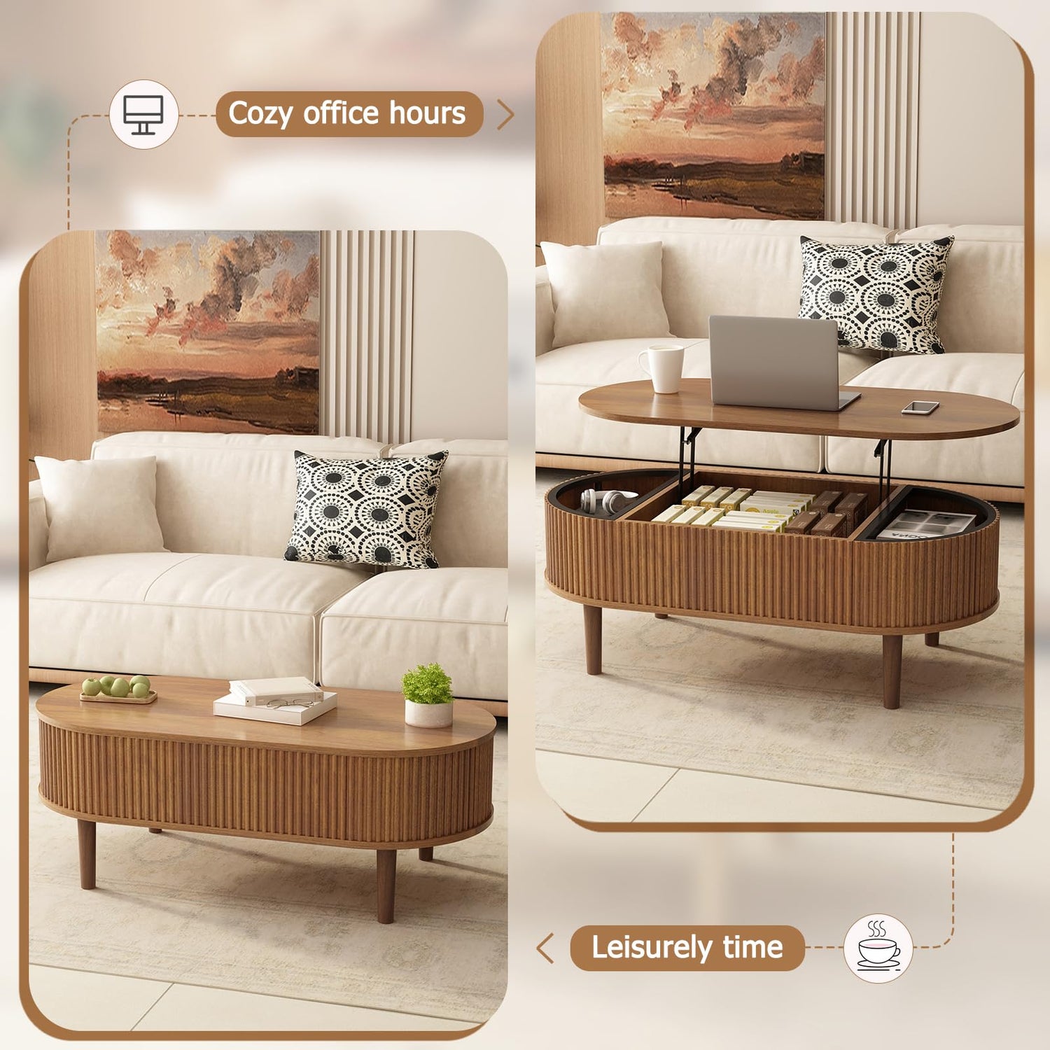 Ludatido 39 Inch Lift Top Coffee Table with 3 Storage for Living Room, Oval Coffee Table with Hidden Compartment, Fully Wooden Center Easy to Assembled for Home Living Room Office Brown