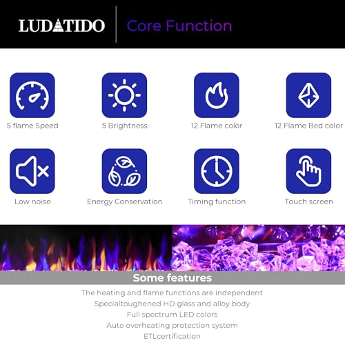 - User-Friendly Controls: Easily adjust the 1-8 hour timer, flame settings, and power on/off using the intuitive touch screen or remote control. Makes it easier to control every function of your electric fireplace