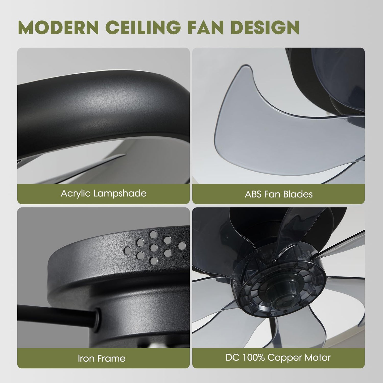 - 【Elegant and Modern Design】: Our ceiling fan with lights boasts a sleek and stylish design that adds a touch of modern elegance to any room. Crafted from high-quality iron, ABS, and acrylic materials, this black flush mount ceiling fan is both durable and attractive.
