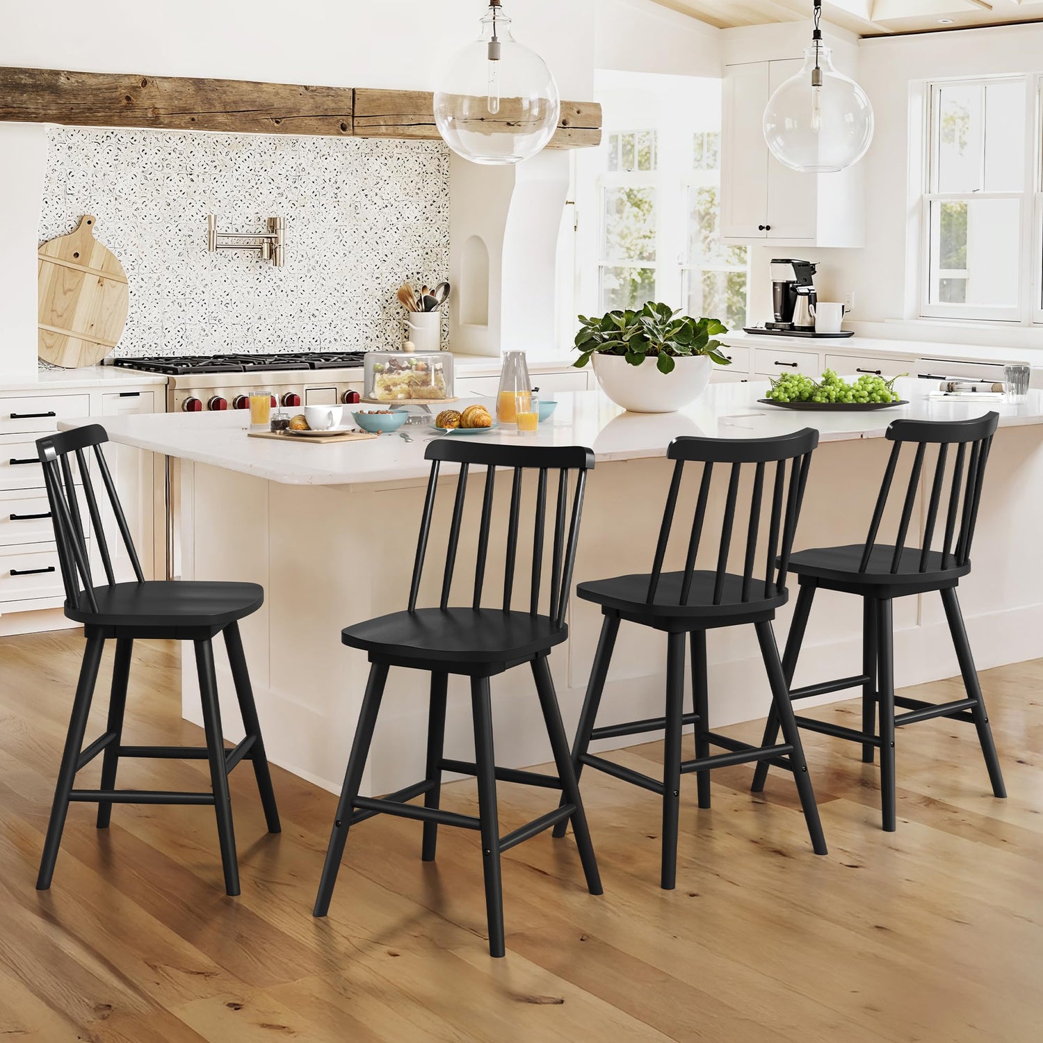 LUE BONA 360° Swivel Bar Stools Set of 4, Black Windsor Barstools, Counter Height Barstool with Spindle Back, 24 inch Farmhouse Wooden Counter Stools for Kitchen Island, Pub, Bistro, Cafe