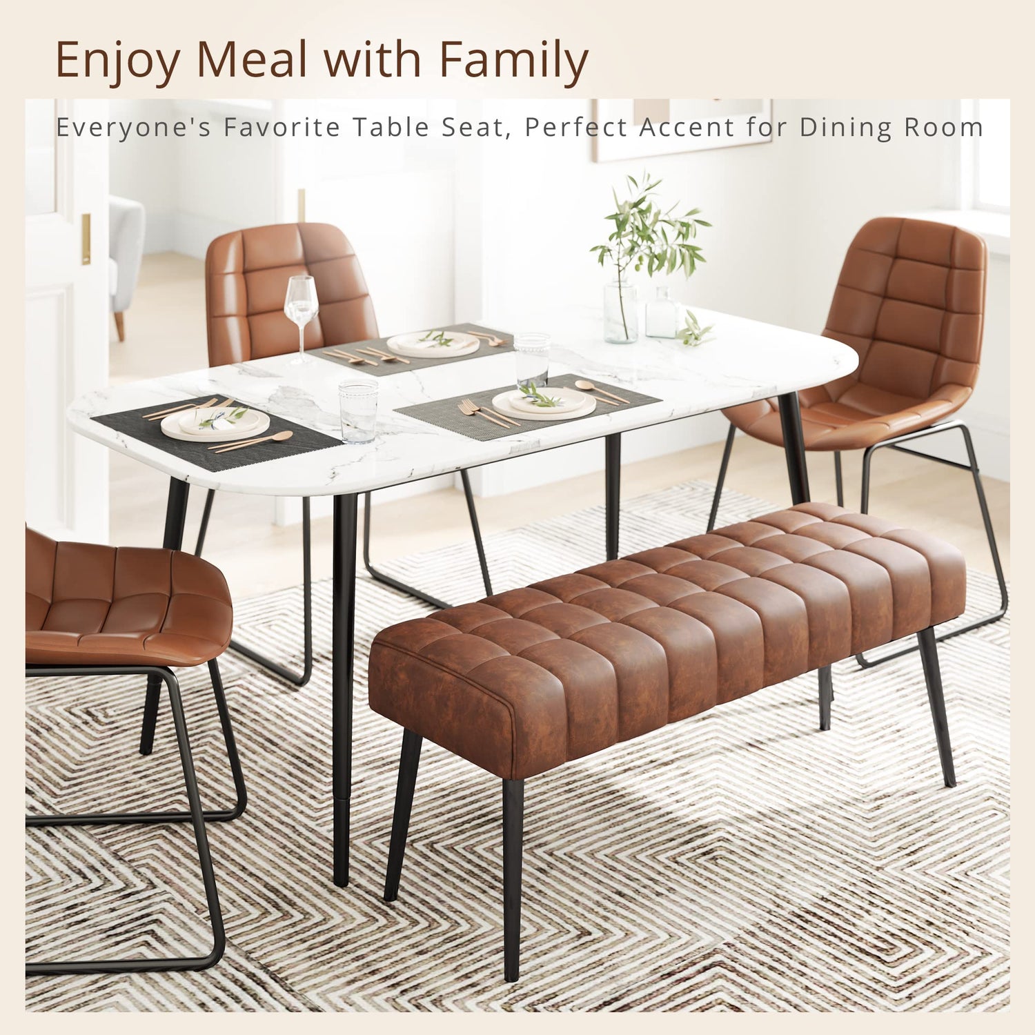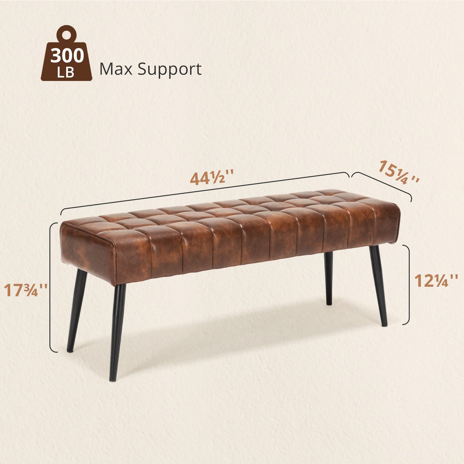 LUE BONA Entryway Bench, 44.5'' Leather Upholstered Bedroom Benches, End of Bed Bench with Metal Legs, for Decorative, Living Room, Dining Room, Red Brown