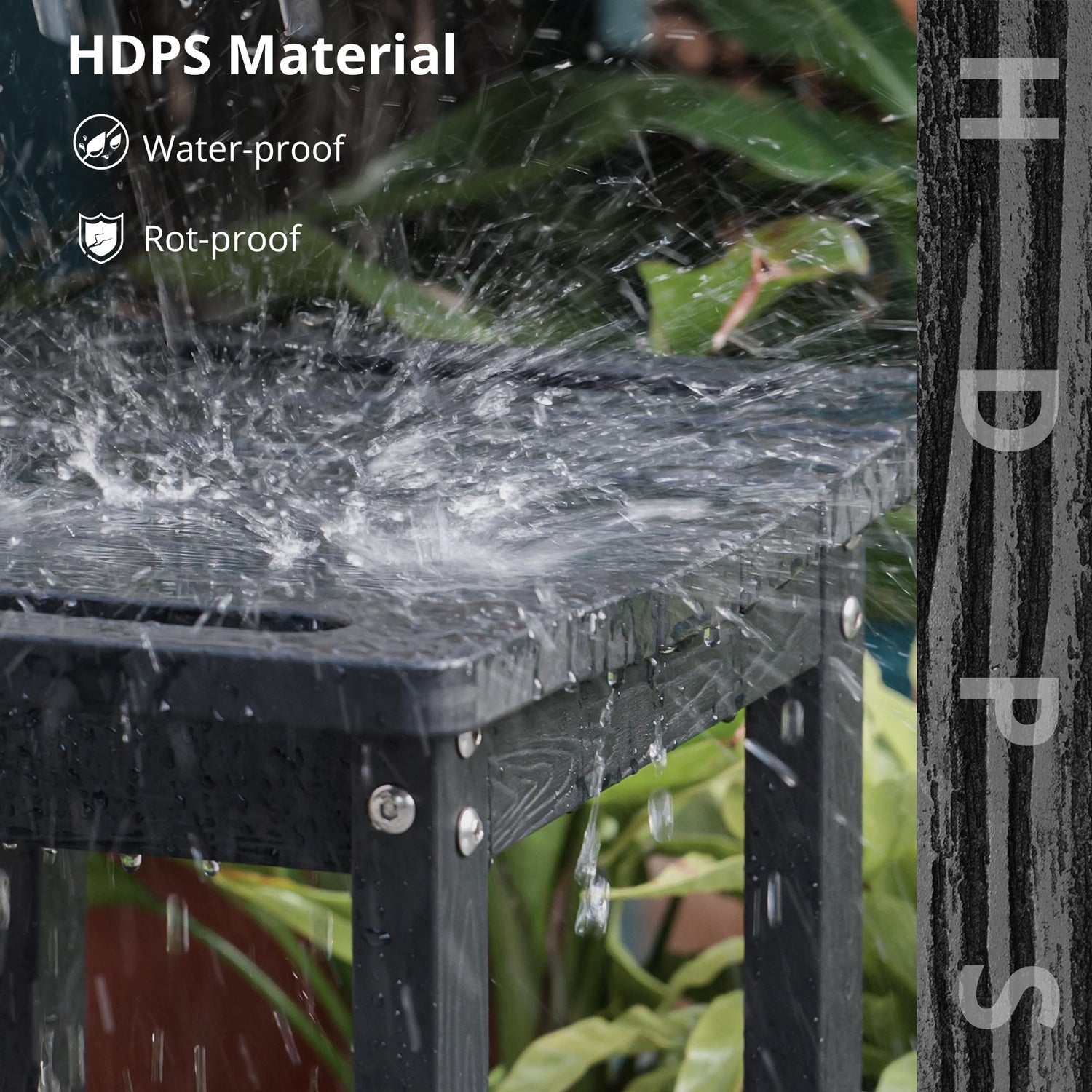 - HDPS Material: HDPS is a material that looks like natural wood and has a nice grainy feel to it, it performs better in terms of water resistance, weather resistance, scratch resistance, stain resistance, and durability and has a lower maintenance cost
