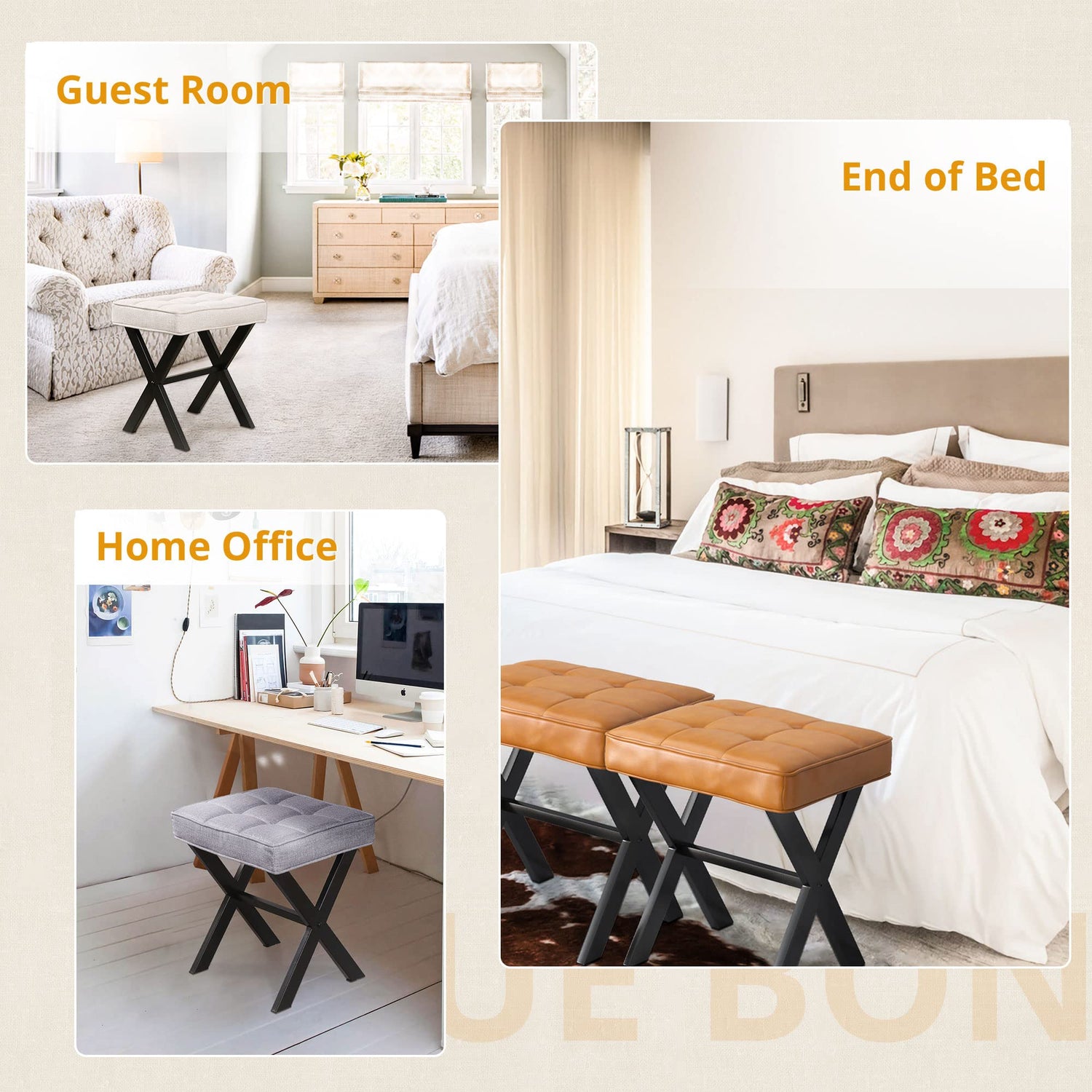 - Details Talk: Tufted design looks more exquisite, padded seating cushion is soft and comfortable, The faux leather covering, rivet trims and metal X leg; Equipped with plastic foot pads, not only non-slip, but also prevent the floor from being scratched