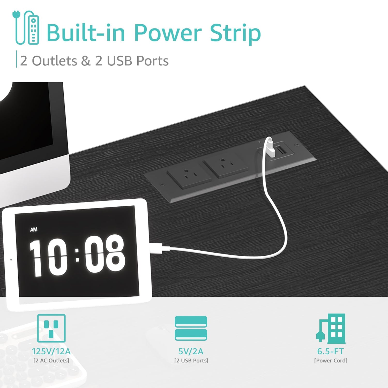 - Safety Multifunctional USB Power Strip: The computer desk includes a built-in power strip with 2 power outlets & 2 USB charging ports for your computer, monitor, gaming gear, pad, phone and other electronic devices. The desk is USPTO Patent Approved.