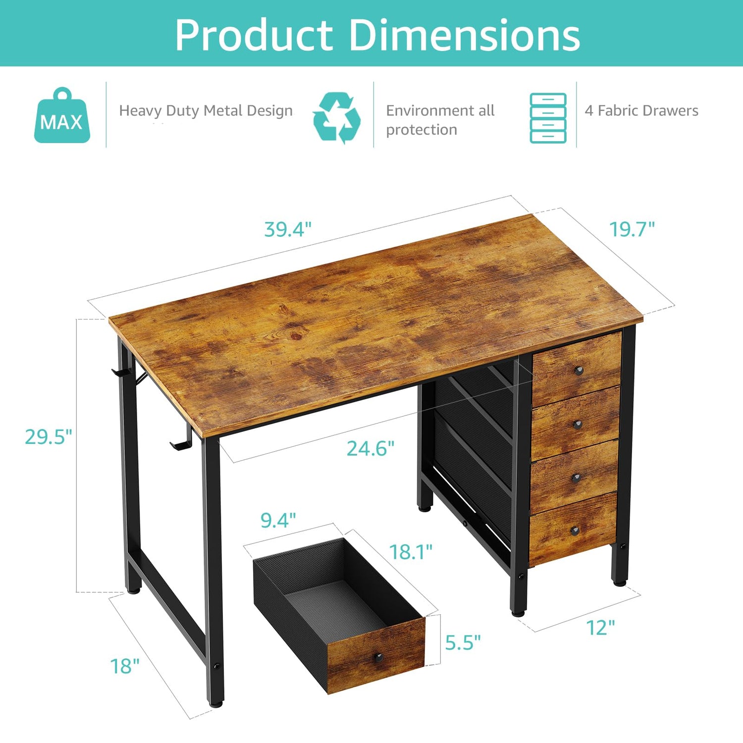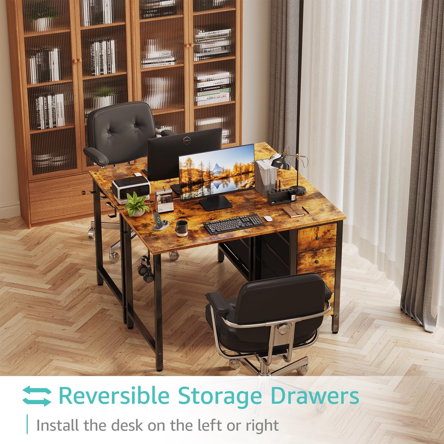- Vintage Style Design: Computer desk with 4 ππππ§ππ πΏπ§ππ¬ππ§π¨ with wooden front, you can try this two installation methods (left or right). This desk is made of thick P2 particle wood board with scratch-resistant, anti-collision and waterproof, protect home office desk surface from daily wear and tear, rustic brown desktop match black metal steel frame match most room decoration, cute desk suit small space.