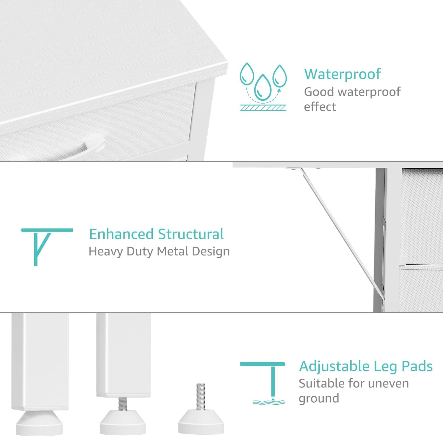 Lufeiya 47 Inch Computer Desk with 9 Drawers, Office Desk Work Desk for Home Office, Study, Writing, Vanity Desk with Fabric Drawers on Both Sides, Large Storage, White