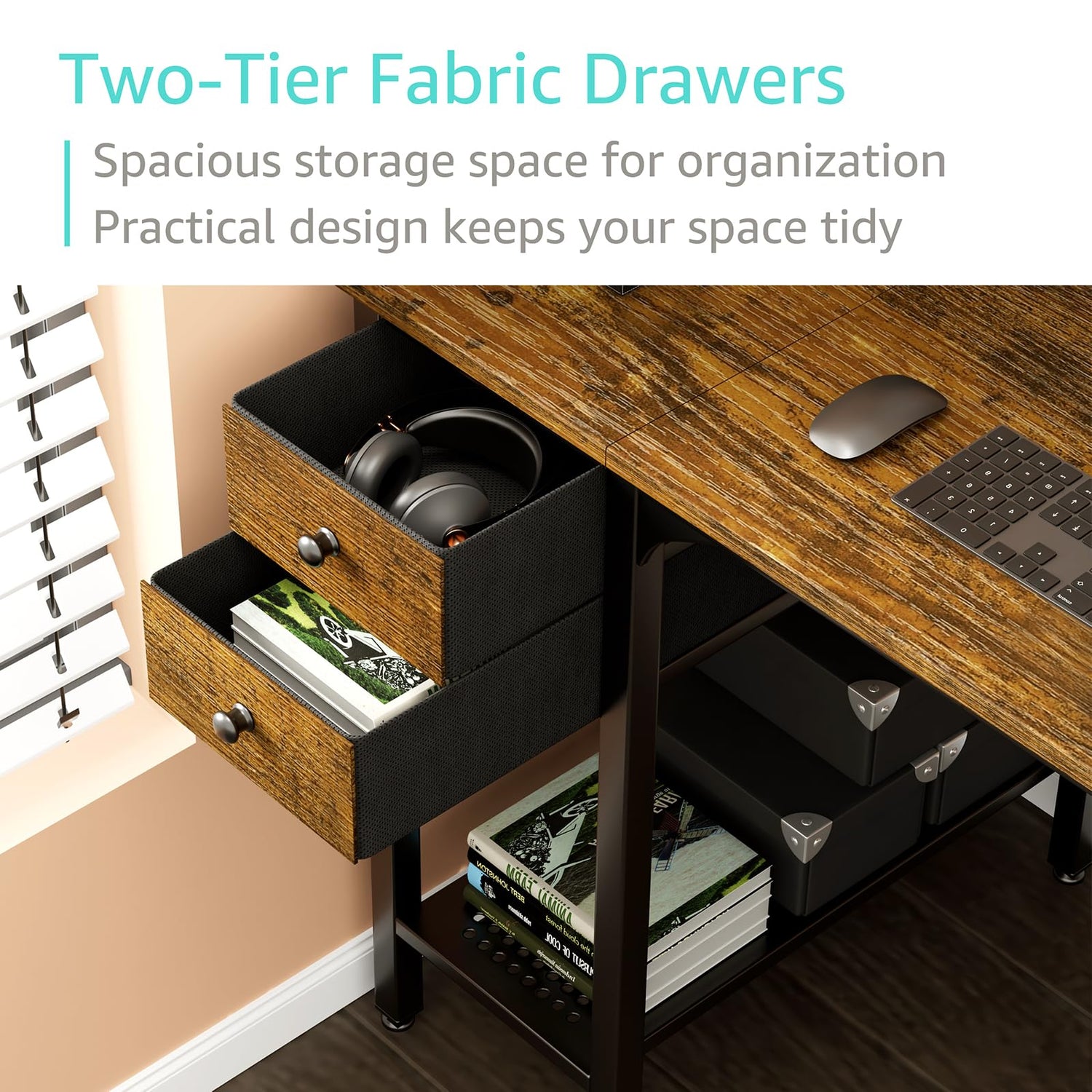 - MODERN SIMPLE STYLE DESIGN: Computer desk with 2-tier open fabric drawers and one shelf for storage, providing plenty of room for under-desk storage and organization. You can try this two installation methods (left or right). This splice board desk is made of thick P2 particle wood board with scratch-resistant, anti-collision and waterproof, protect home office desk surface from daily wear and tear.