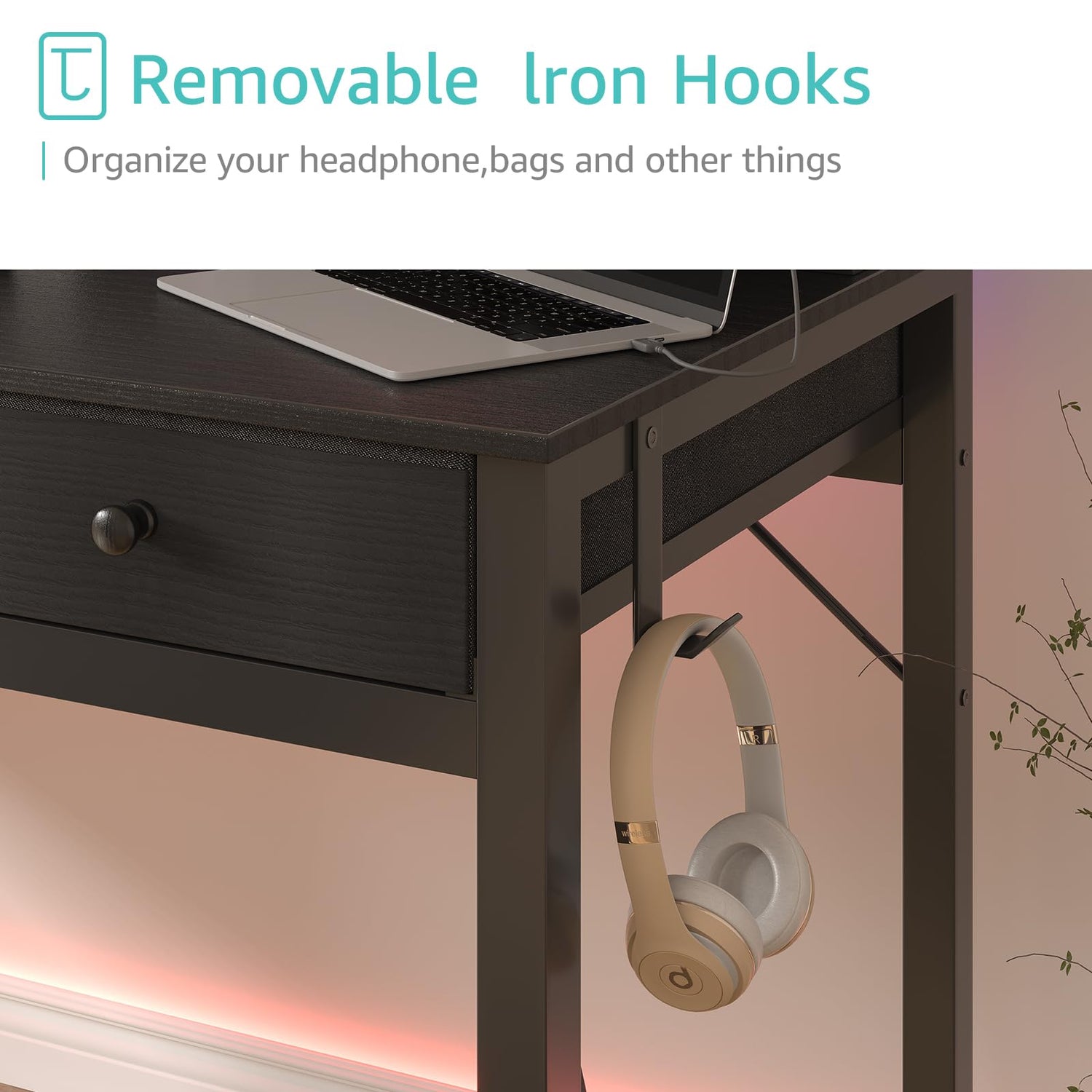 - Modern Simple Style Design: Computer desk with 5 ๐๐๐๐ง๐๐ ๐ฟ๐ง๐๐ฌ๐๐ง๐จ, the addition of this feature renders the desk lightweight and facilitates its mobility. The desk with small drawers and side hutch offers storage solution to your home office supplies. Table with headphone hook, it can organize your headphone, bags and other things.