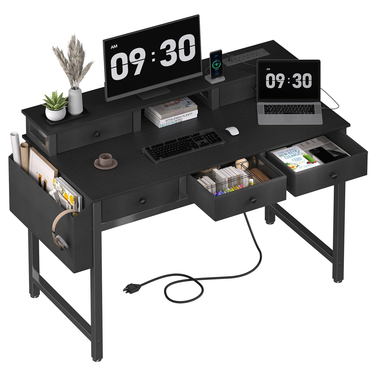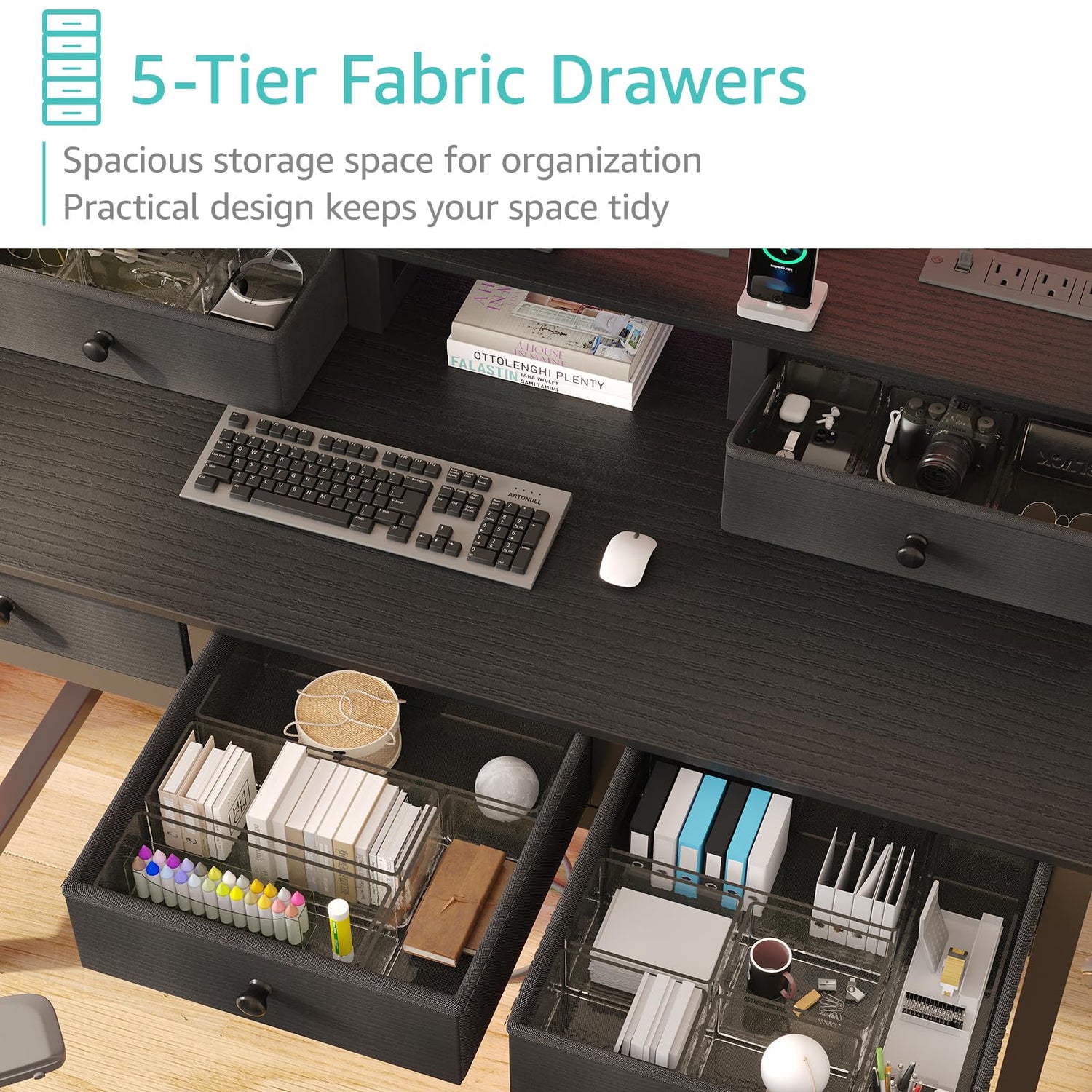 Lufeiya Computer Desk with Drawers for Home Office Bedroom, 40 inch Black Writing Study Desks with Fabric Drawers Storage, Gaming Desk Table with Power Outlet & Monitor Stand, Black