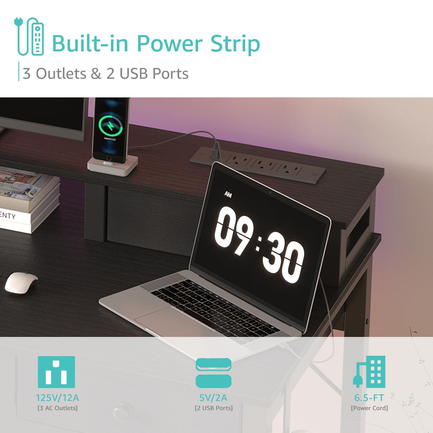 - Safety Multi-functional Power Strip: The computer desk includes a built-in power strip with 3 power outlets & 2 USB charging ports for your computer, monitor, gaming gear, pad, phone and other electronic devices.