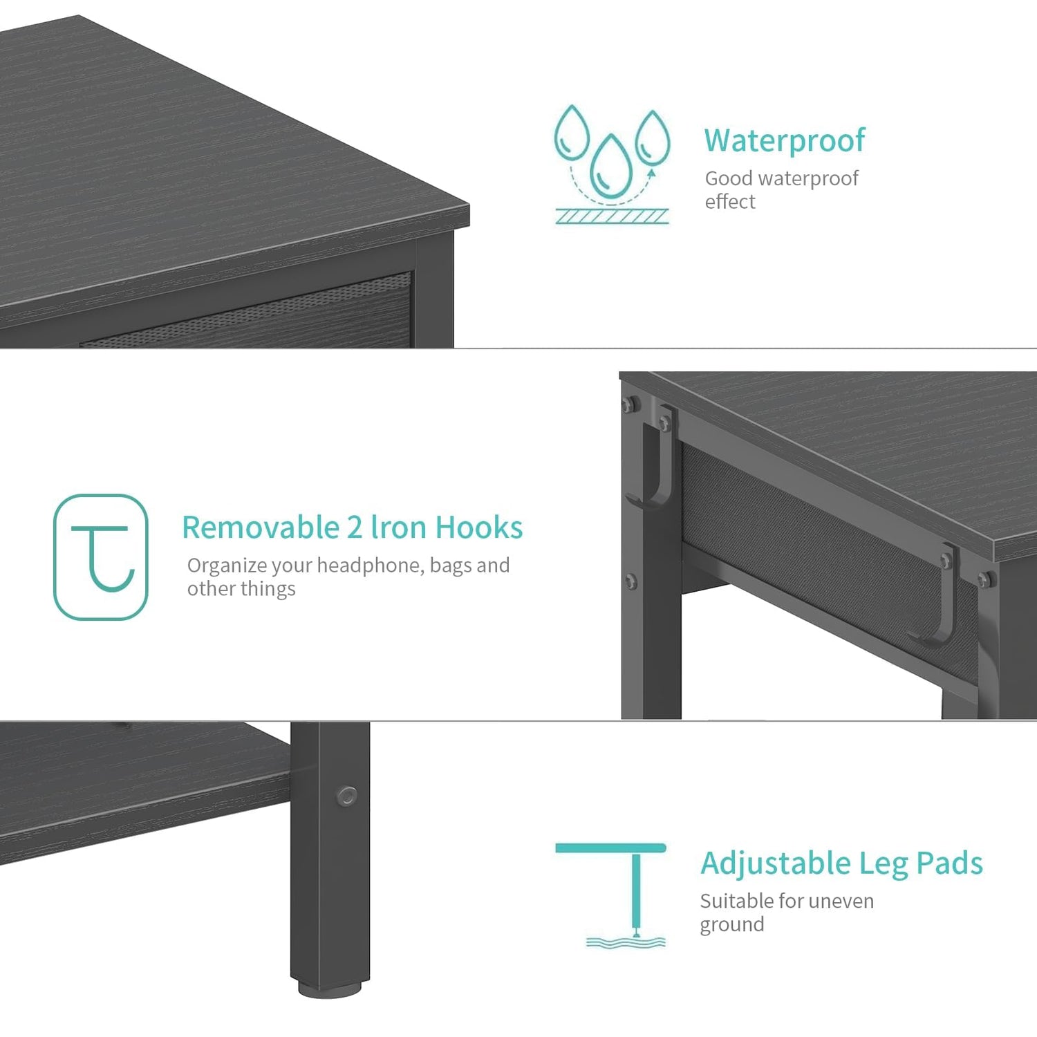 - Writing Desk with Ample Storage Options: The desk with 3 storage shelves, and the shelves have two different heights of installation, you can customize the storage space to your needs. It also have 2 iron hooks (both are removable), perfect for holding headphone, bags or other things