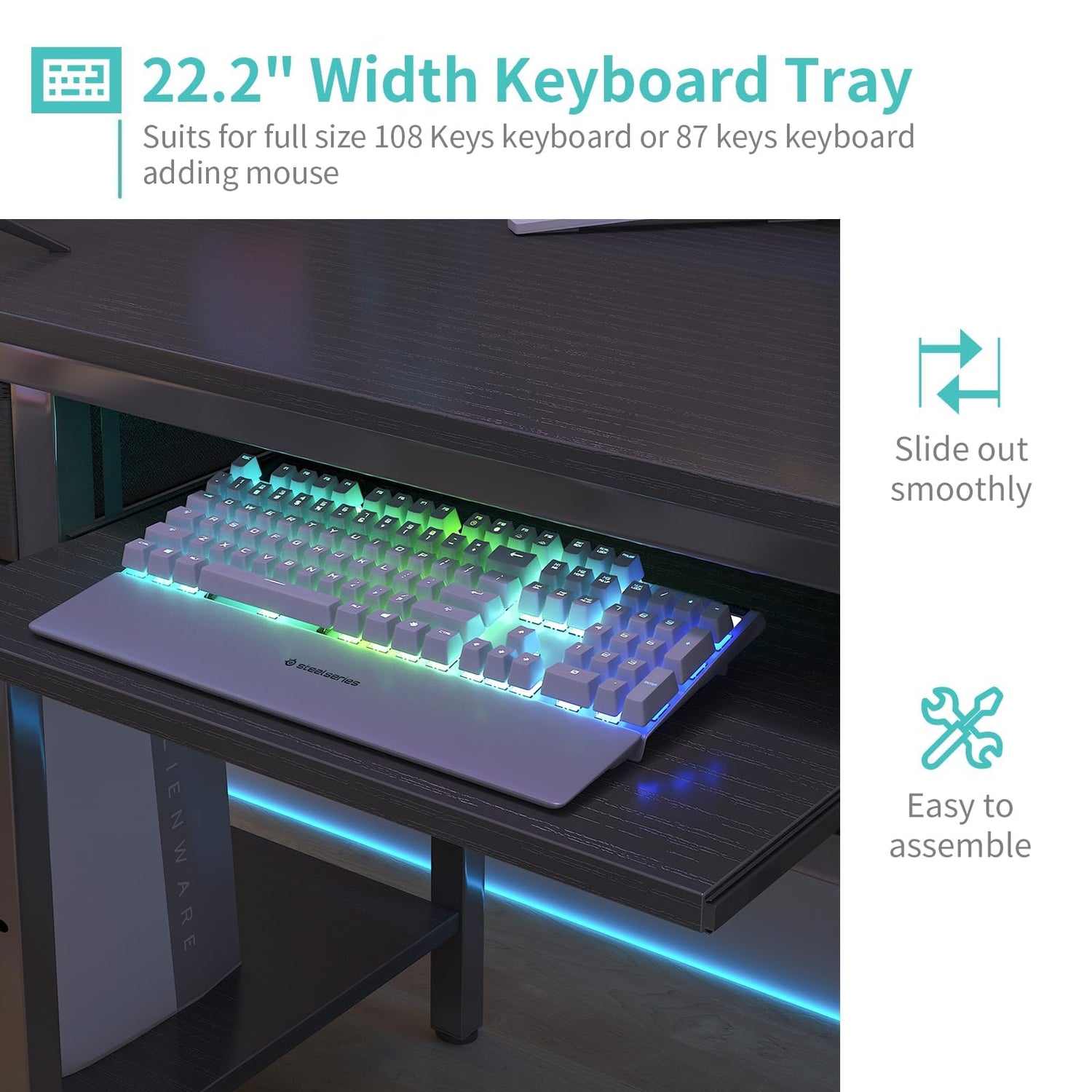- Working Desk With Pull-out Keyboard Tray: The desk is equipped with a keyboard tray. The pull-out keyboard tray suits for full size 108 Keys keyboard or 87 Keys keyboard adding mouse. Plastic accessories on it can prevent the keyboard from slipping out