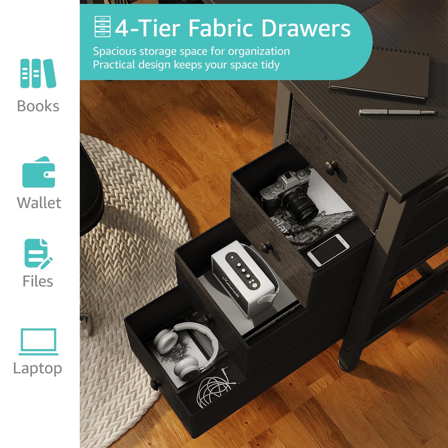 Lufeiya Gaming Desk with 4 Fabric Drawers & Storage Shelves, 47 inch Computer Writing Work Study Desk for Home Office Bedroom, Modern Simple Student PC Desks Table, Black
