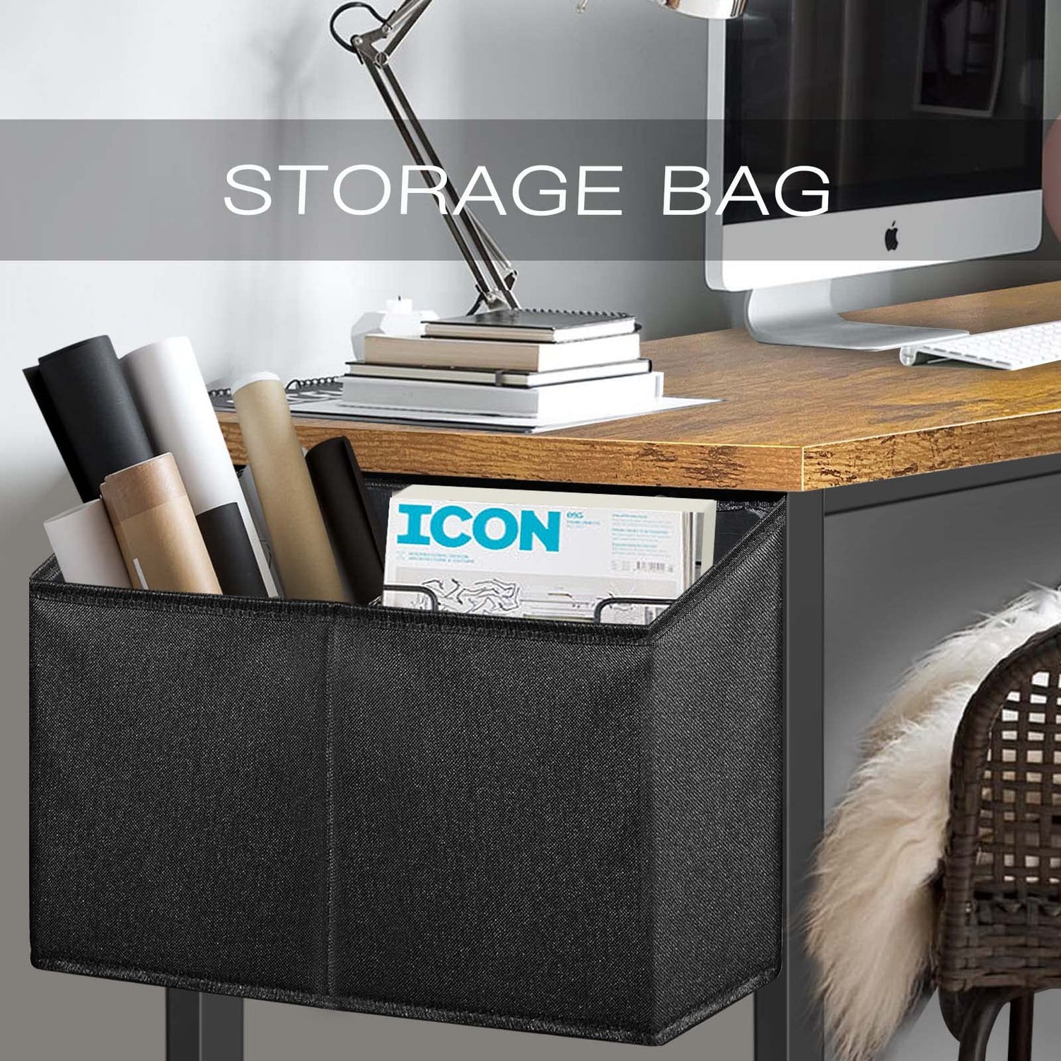 - Modern Simple Style Design: Desk is made of thick Particle board with scratch-resistant, anti-collision and waterproof, protect home office desk surface from daily wear and tear, Brown desktop match black metal frame , with storage bag and headphone hook ( Both Removable ) .