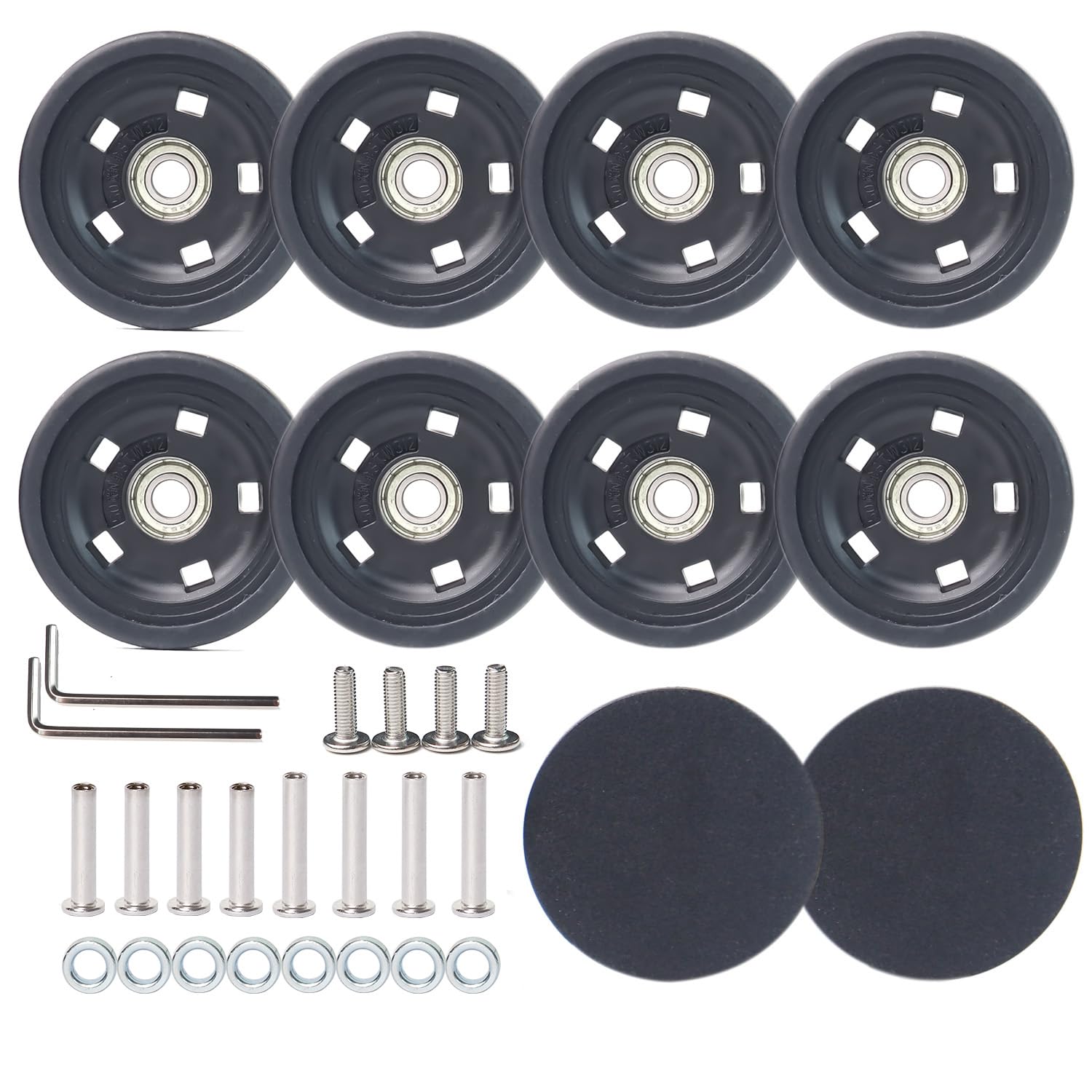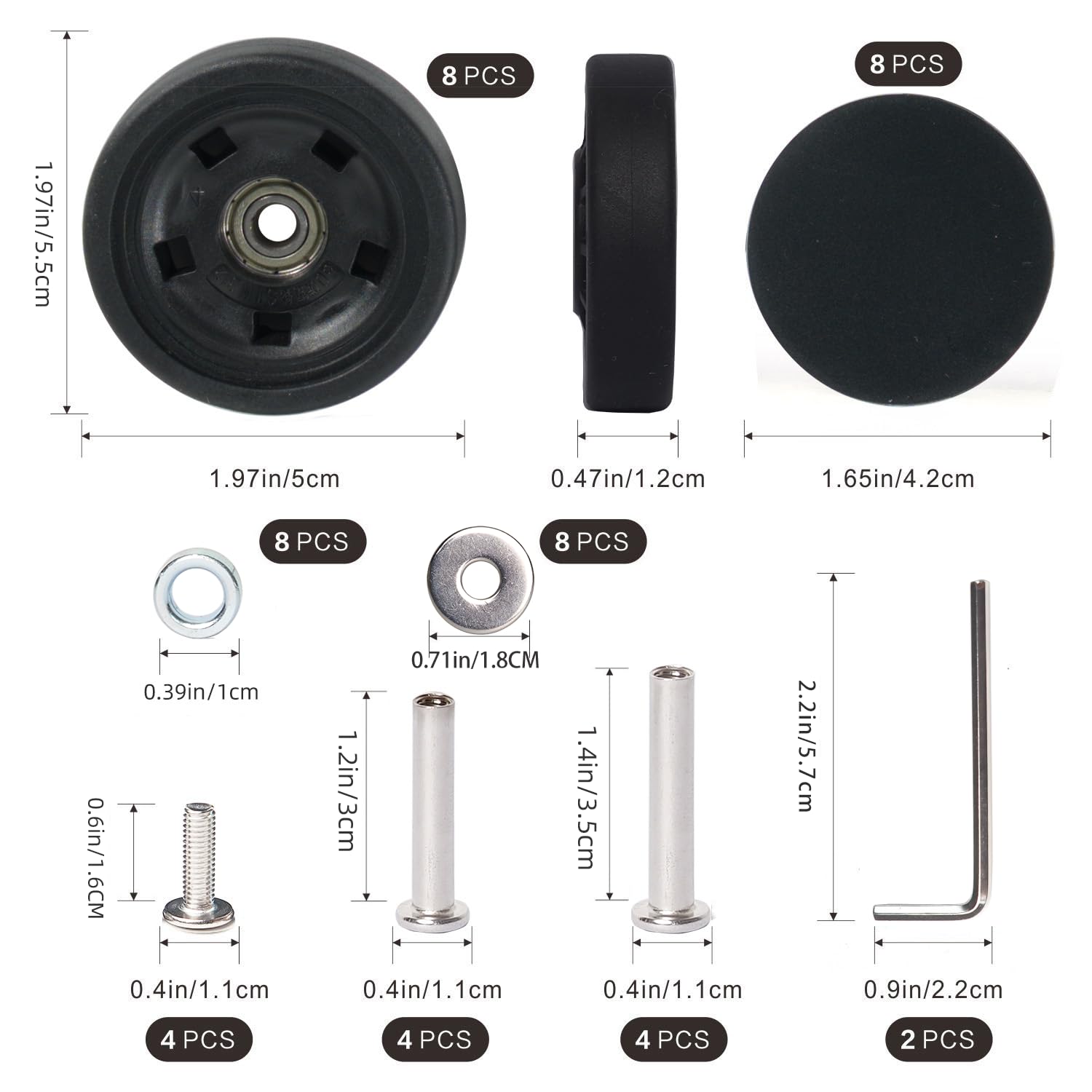 Luggage Wheels Replacement Kit 50mm x 12mm, Suitcase Replacement Wheels with Black Screws Axles Bearings, Repair Suitcase Caster Set for Trolley Bag Travel (8PCS)