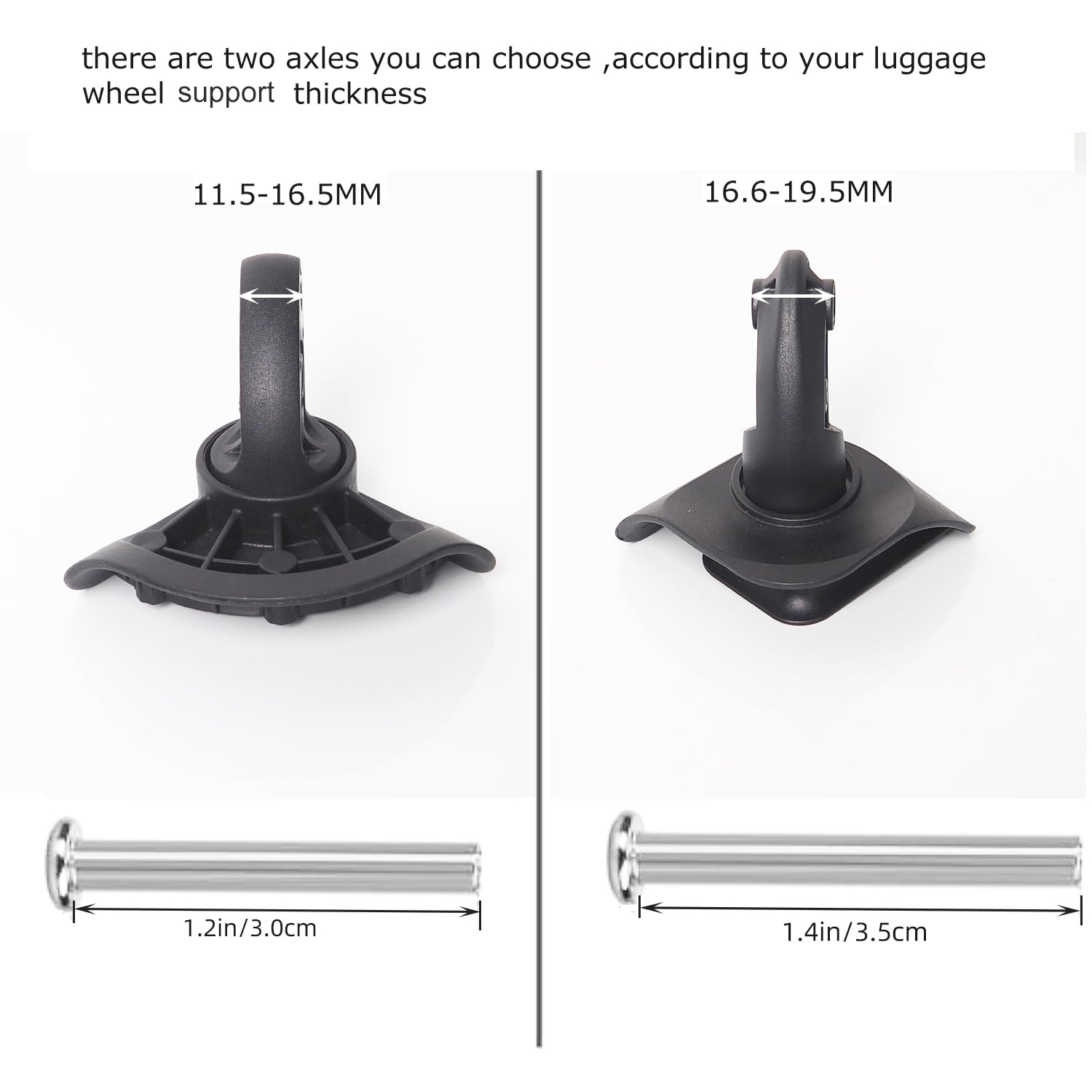 - Before installation ,pls ensure your original luggage wheel housing is in good condition and according the thickness of your luggage wheel support to choose the right axles.
