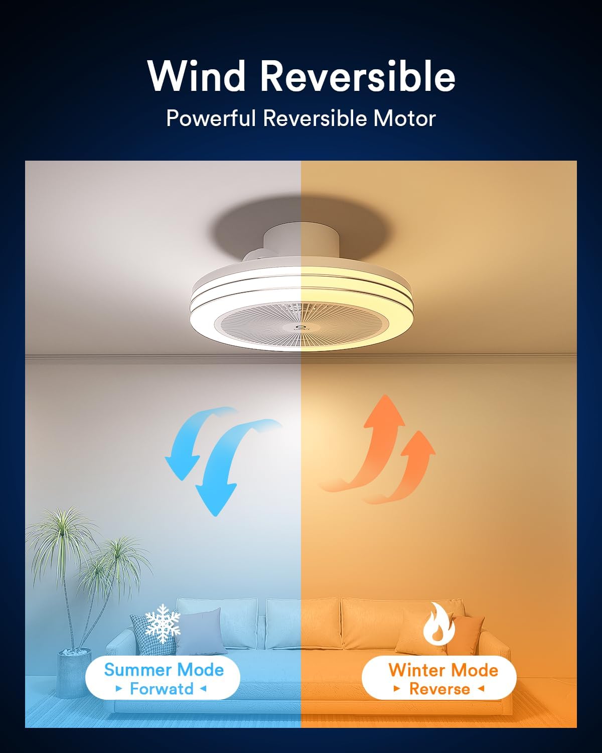 - 【Wind Reversible】 Lumary smart ceiling fan light features 8 Premium ABS fan blades, a smooth surface, and reversible rotation. The forward wind direction(summer mode) creates a downward airflow, which is for cooling, and the reverse wind direction(winter mode) creates an upward airflow, which is for refreshing the air