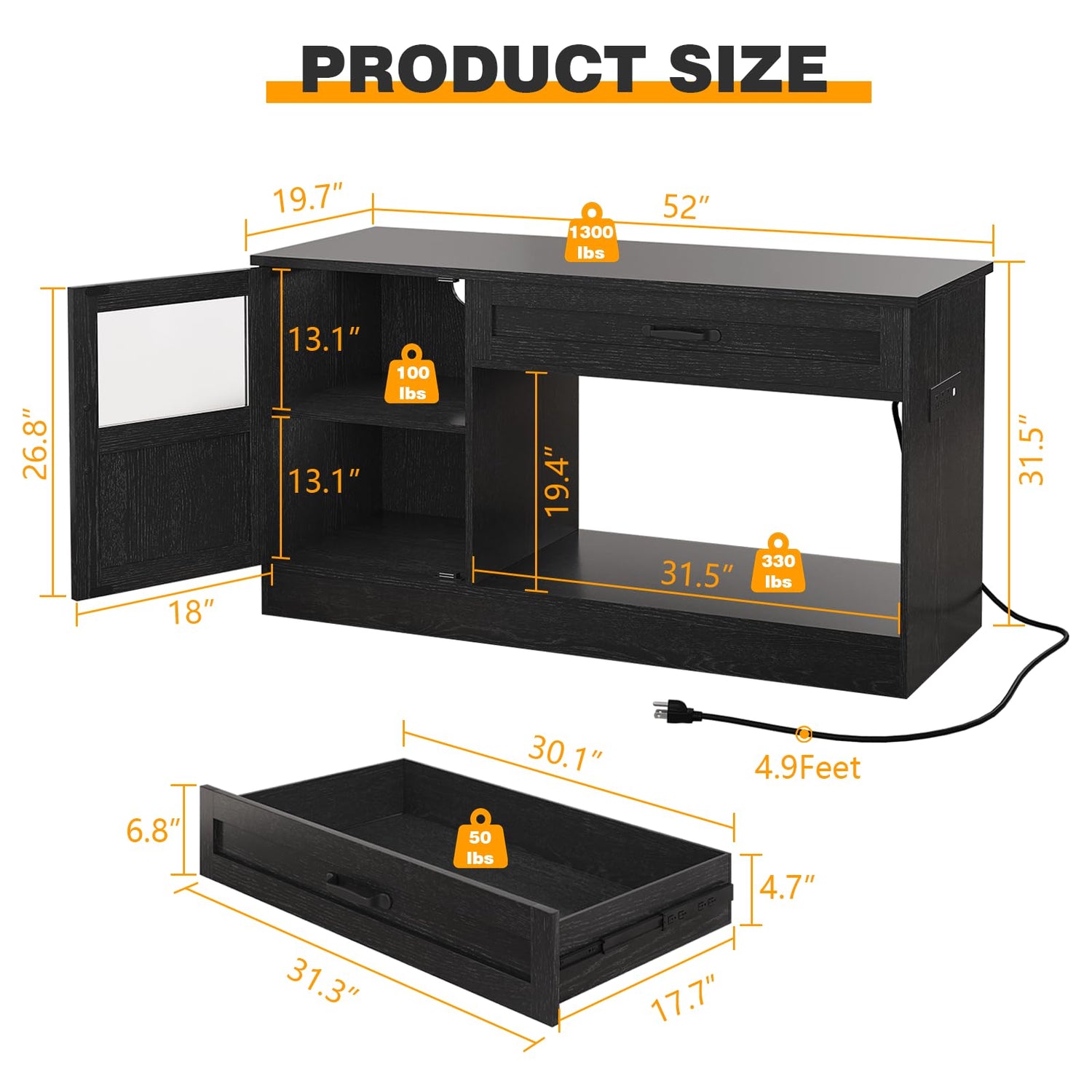 LUMIINOFAMI 55 Gallon Fish Tank Stand, Tank Stand 55-75 Gallon, Aquarium Stand 55 Gallon with Drawer, Reptile Tank Stand with Power Strip and LED Light, Terrarium Stand -1300Lbs