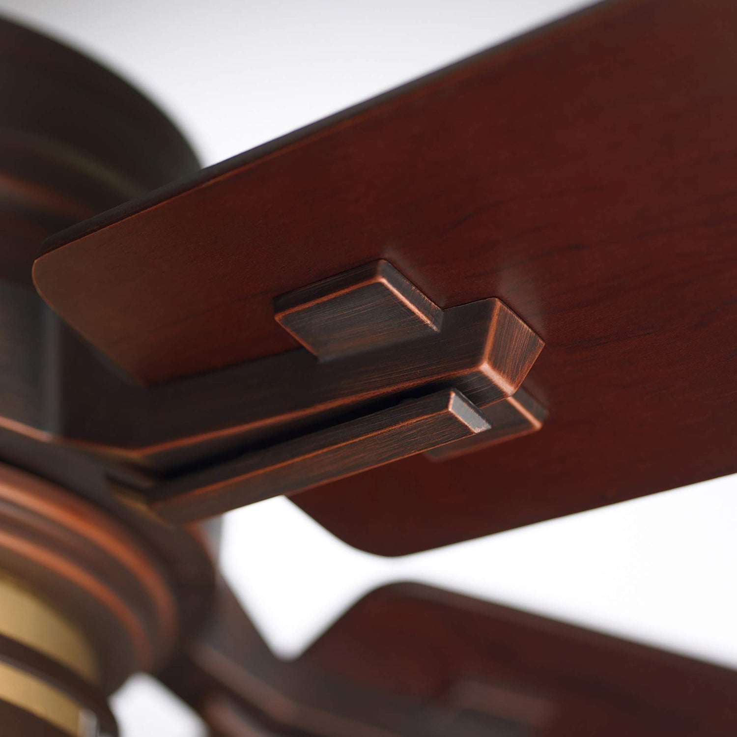 - MODERN FARMHOUSE DESIGN – Built from durable metal in a brushed bronze finish, this contemporary ceiling fixture is great for rustic and industrial decorating styles. Comes 5 reversible blades in Dark Cherry and Honey Oak stains to suit your design taste.