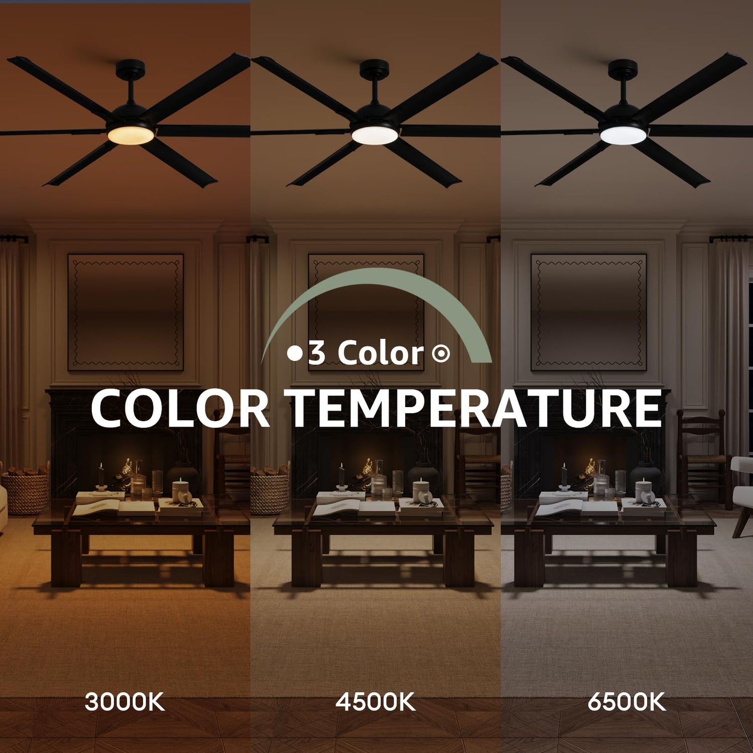 - Black Modern Ceiling Fan with Remote: Equipped with a remote control, this fan features 6 speed settings and allows you to adjust the LED light color temperature between warm light (3000K), daylight (4500K), or cool light (6500K) by pressing the LIGHT ON/OFF button. The timer function offers options for 1/2/4 hours.