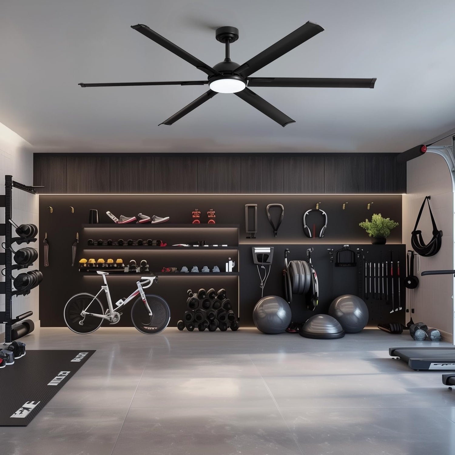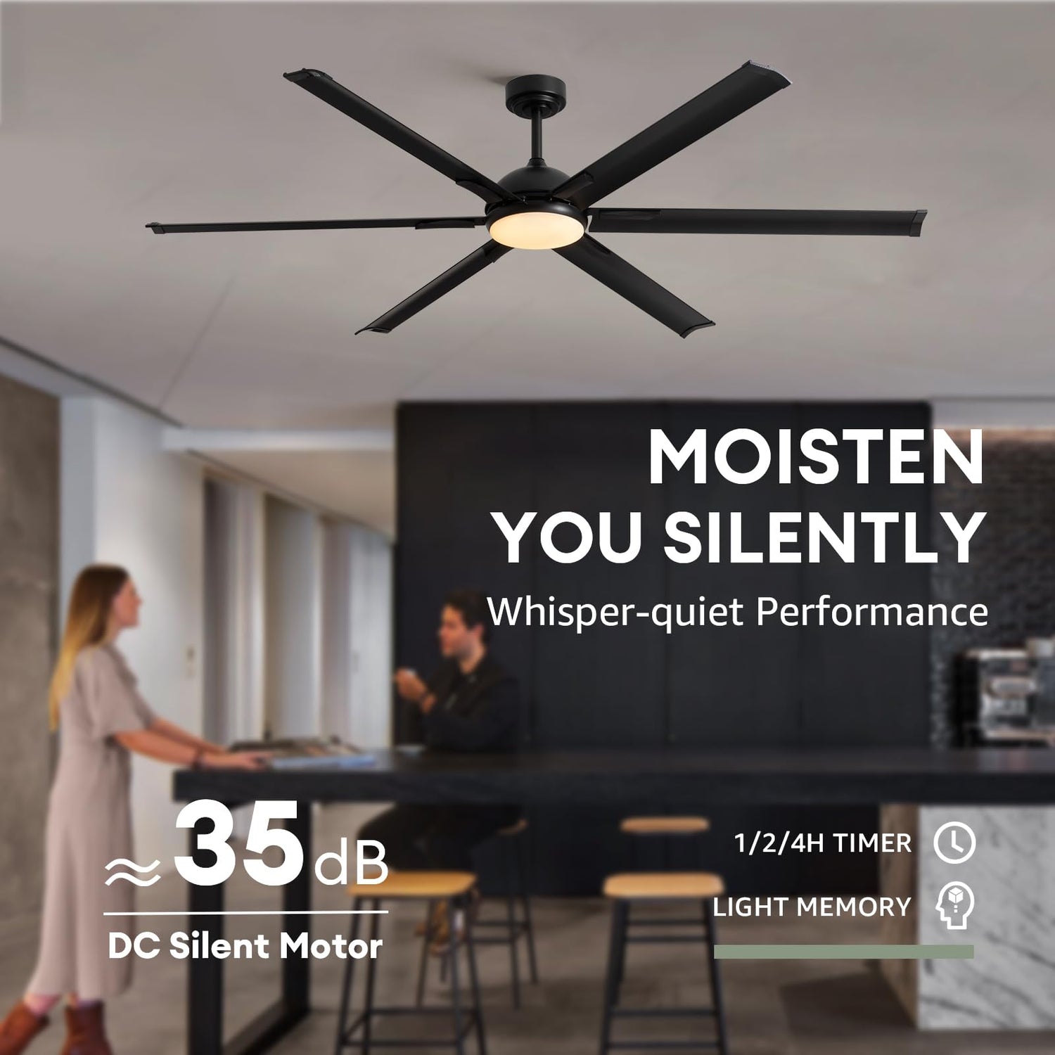 LuminFan 72 Inch Large Ceiling Fan with 6 Aluminum Blades, 6-Speed, 3-CCT, Turbo DC Motor, Remote Black Ceiling Fan for Living Room, Warehouse, Garage - Heavy-Duty Industrial Design