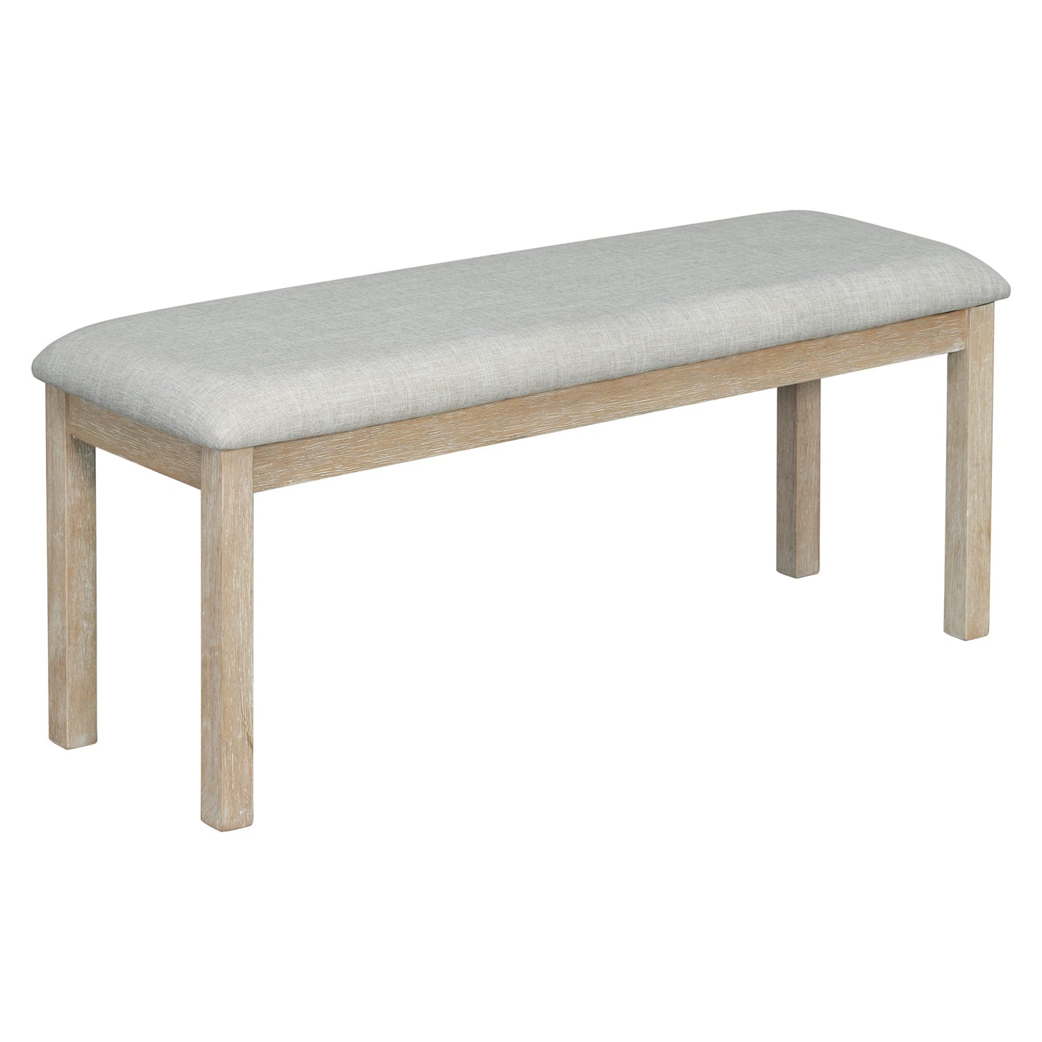 - 【Wood Kitchen Dining Furniture Set】The tabletop of this dining table set adopts MDF board and solid wood veneer, and the legs of the table is made of rubber wood. The frame of four chairs and the bench is manufactured of rubber wood as well to ensure adequate load-bearing capacity. In addition, the 65mm cushion seats of four chairs and the bench can offer comfort using experience.