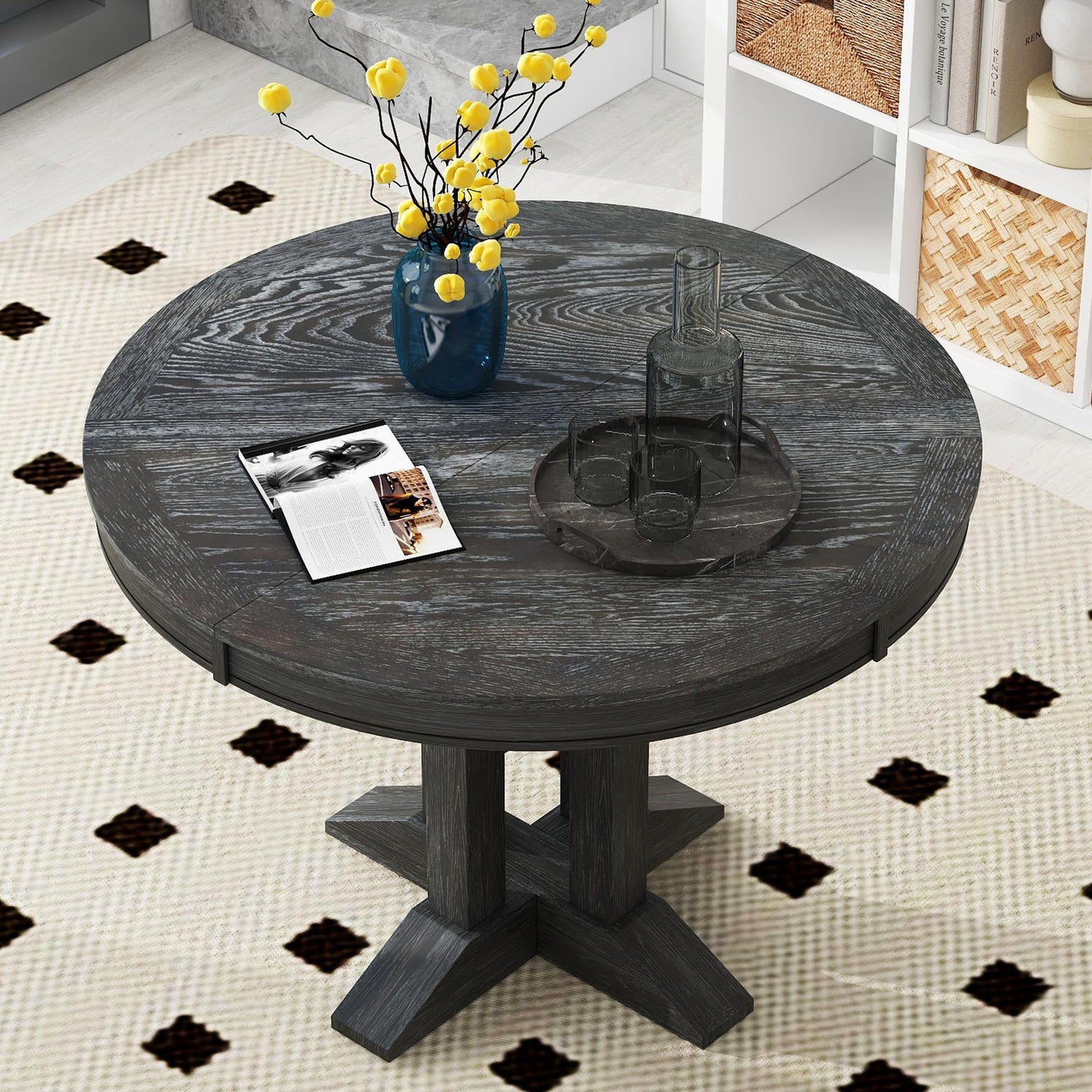 - [Extendable Round Dining Table] This round table can be adjusted, 42 "-58", you just need to insert the blades, you can get an oval table top. You can adjust the desktop according to your actual needs. The table has a load-bearing capacity of 300 pounds.
