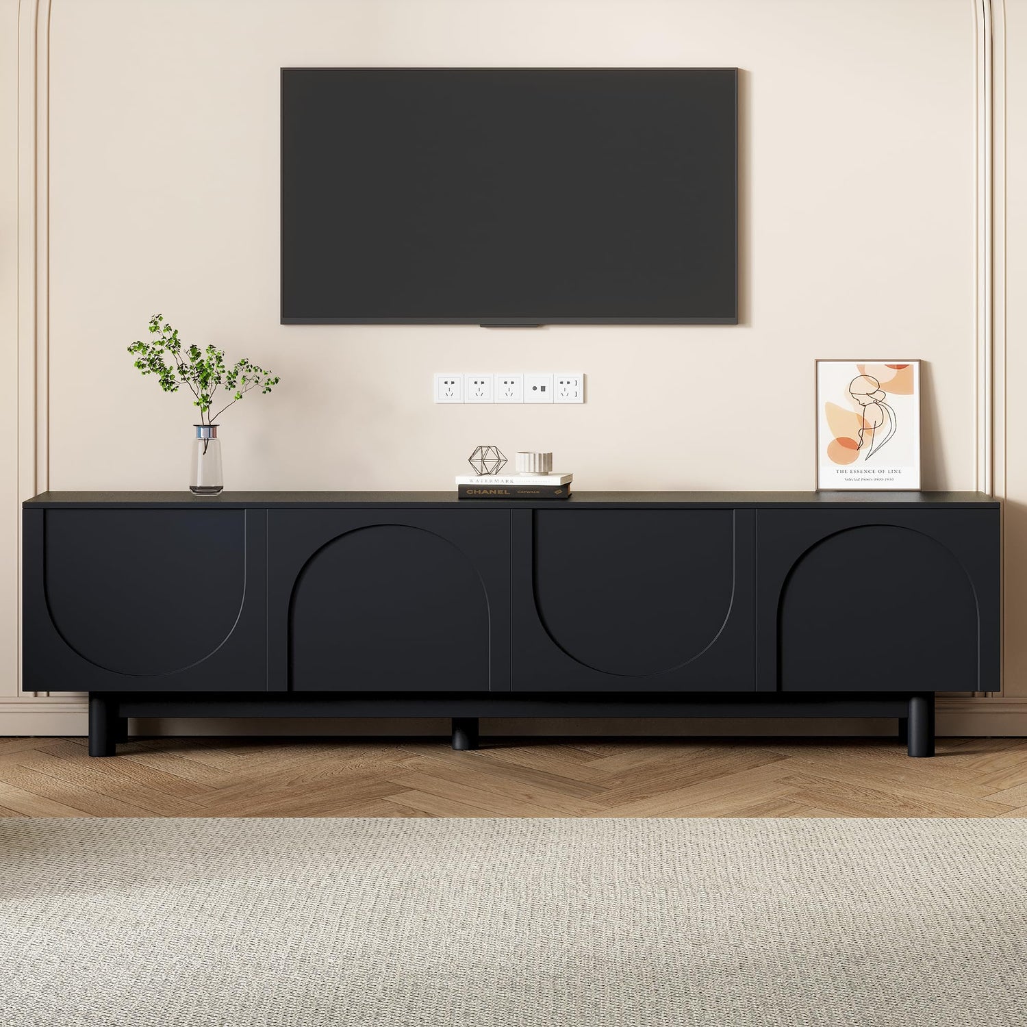 - [Elegant TV Cabinet]: The arched panels make this TV cabinet more stylish and unique. The elegant white and mysterious black perfectly match any style of room decoration. The 70.8-inch long tabletop can be paired with a variety of TV sets.