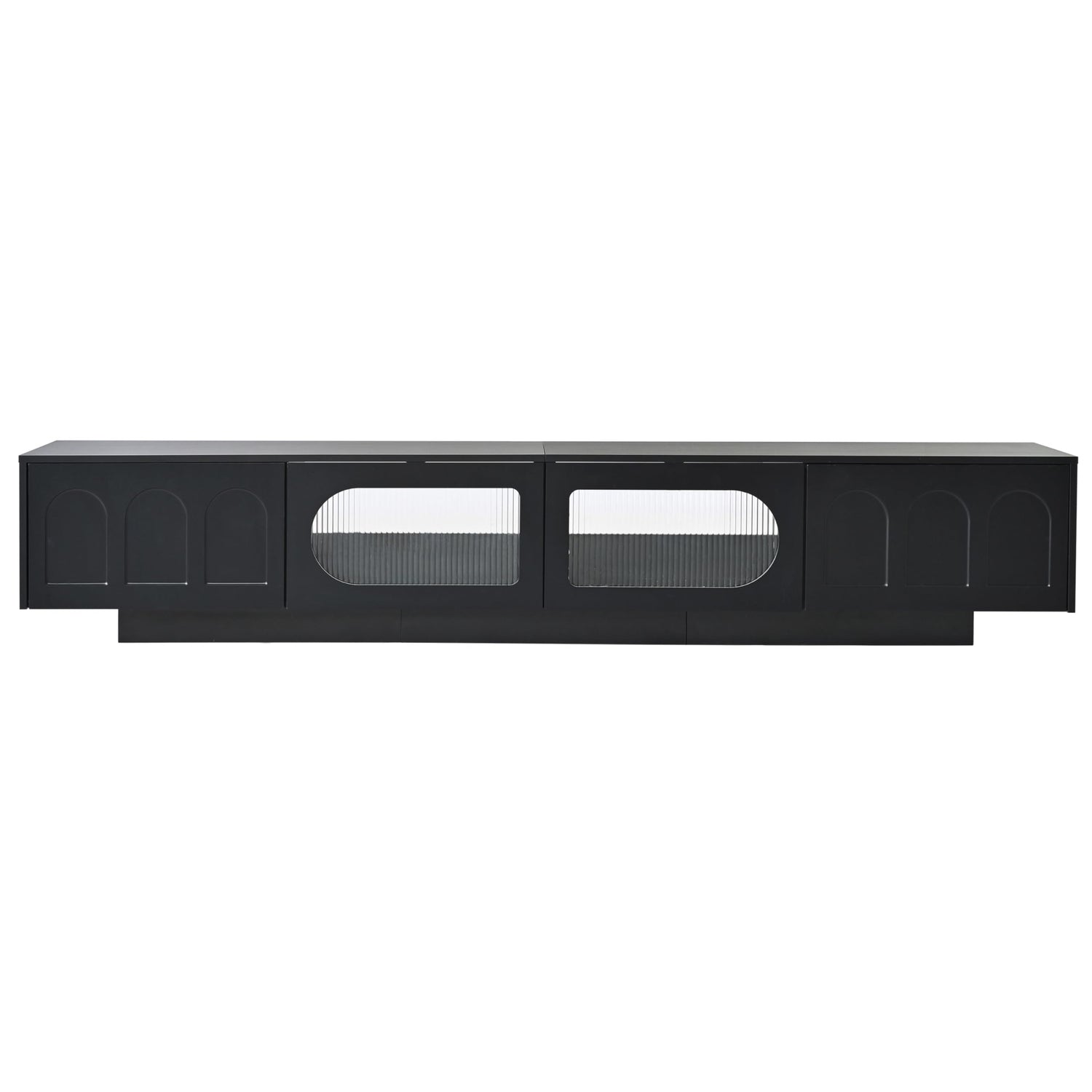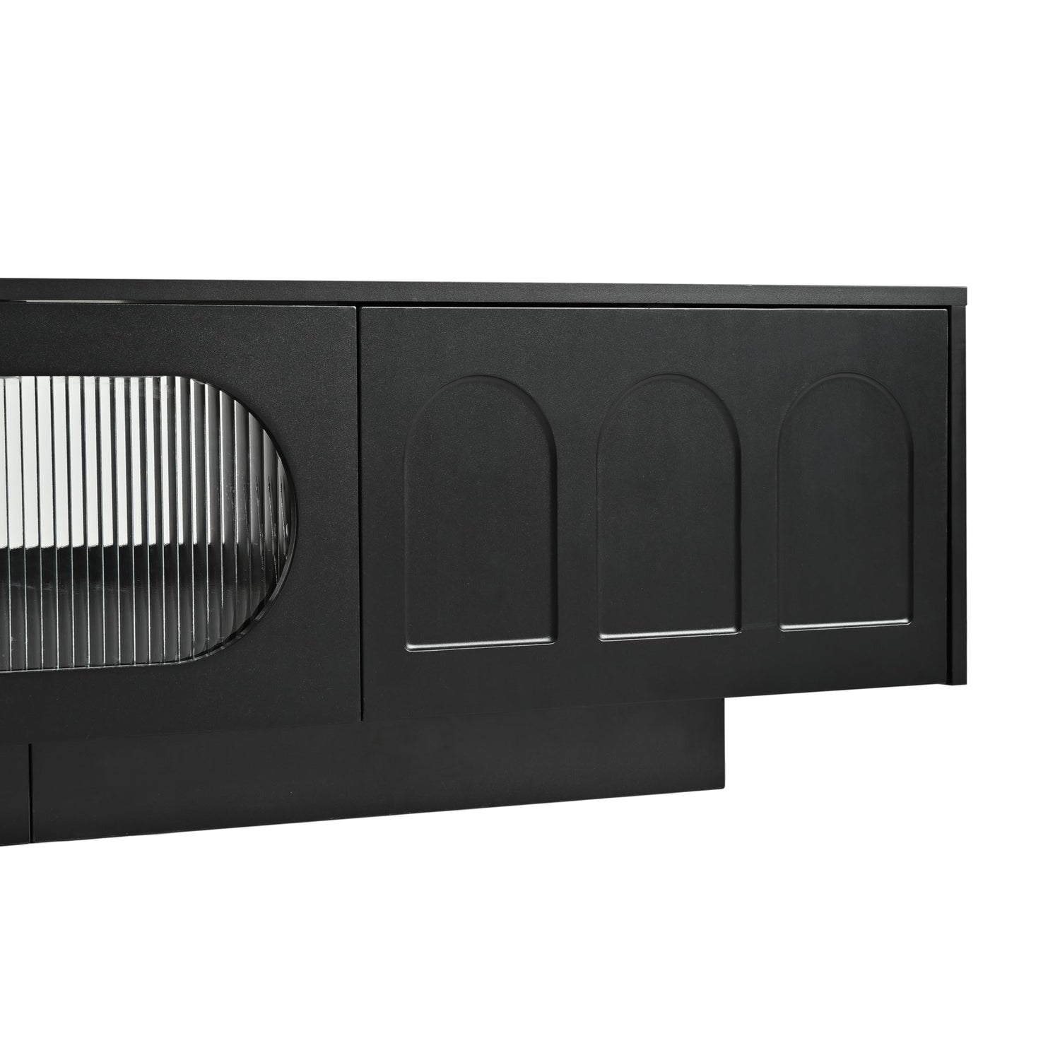 - Chic Geometric Design: This TV cabinet features a striking geometric pattern that brings a modern and stylish flair to any room. The arched translucent glass doors offer a clear view of the contents while enhancing the overall elegance.
