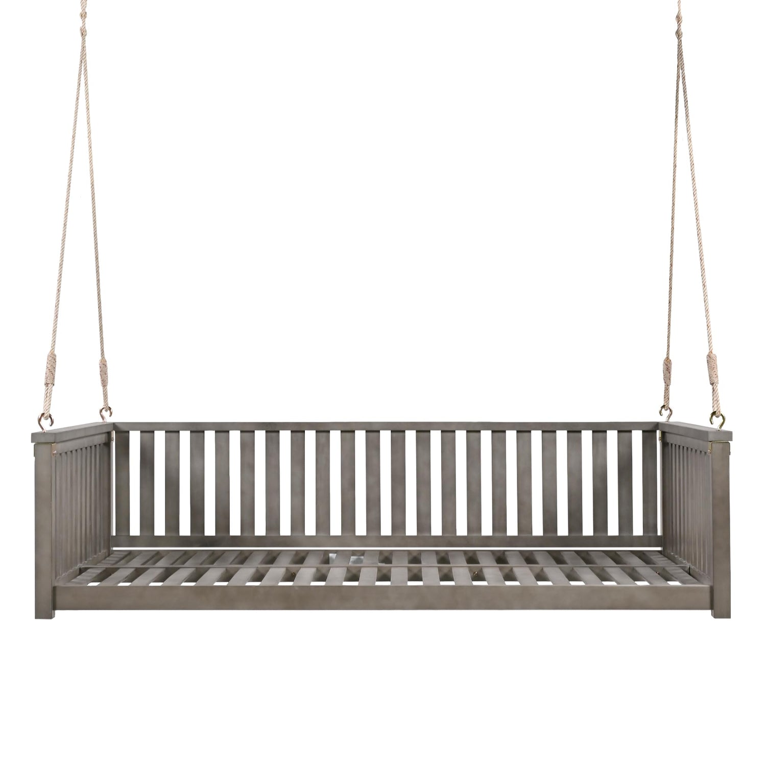 LUMISOL Patio Twin Size Garden Swing Bed with Ropes, Outdoor Porch Swing for Backyard Poolside Garden, Safe Sloped Design, Gray