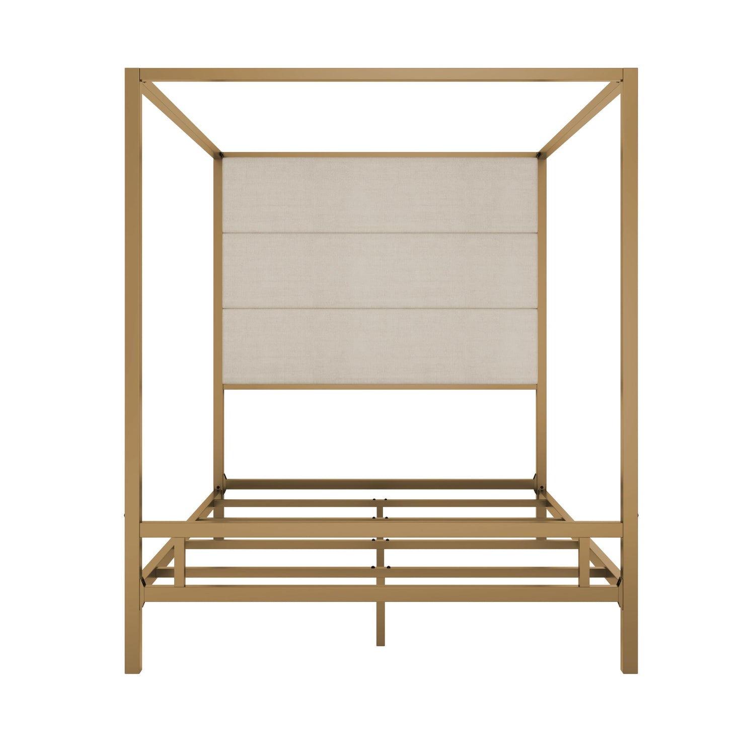 LUMISOL Queen Metal Canopy Bed with Tall Velvet Fabric Upholstered Headboard, 4-Poster Bed Canopy Bed Frame, Queen Canopy Platform Bed Metal, Box Spring Needed, Gold
