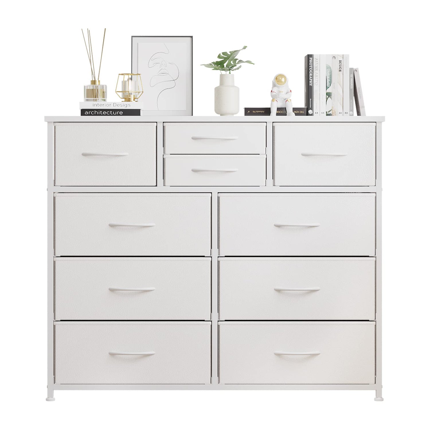 LUMTOK 10-Drawer Dresser, Fabric Storage Dressers Drawers for Bedroom, Hallway, Nursery, Closets, Steel Frame, Wood Top, Easy Pull Handle (White)